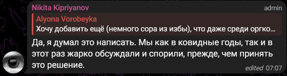 >записыванию Соника в оргкомитет Уволился две недели назад? А почему в админах официальной фестивальной конфы? Мерлин и Астис тоже уволились? А почему рассказывают от лица оргкома, как совещались и отменяли фест?