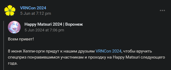 2024 — в Воронеже в третий раз проходят Happy Matsuri и VRNCon, в Ростов вернулись Танибата и Нянфест. Фестивальные релоканты окончательно утратили разум и влачат жалкое существование в съёмных клоповниках с видом на стройку, время от времени устраивая истерики в соцсетях.