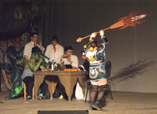 Вы, полагающие, что кто-то ехал в Воронеж за "сценками" - вы что, это серьезно? Туда ехали, чтобы случайно наткнуться в переулке на пробегающих мимо кошкодевочек, или сходив за покушать столкнуться на кассе с богиня-нейм. На несколько дней центр города магическим образом превращался в театральные декорации. С такими вводными по местоположению, архитектуре и климату единственное, что требуется от организаторов, это осторожный уход за ростками естественно сложившейся карнавальной культуры.