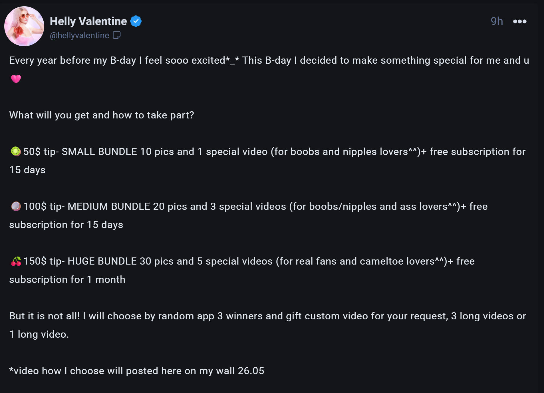 >>1801999 Чо «хм»? У нее фансли дублировал онлифанс. Видимо, решила не размазывать аудиторию, которой на онлике в силу популярности площадки явно больше. А для фансли придумать какой-то уникальный контент. В целом, логично.