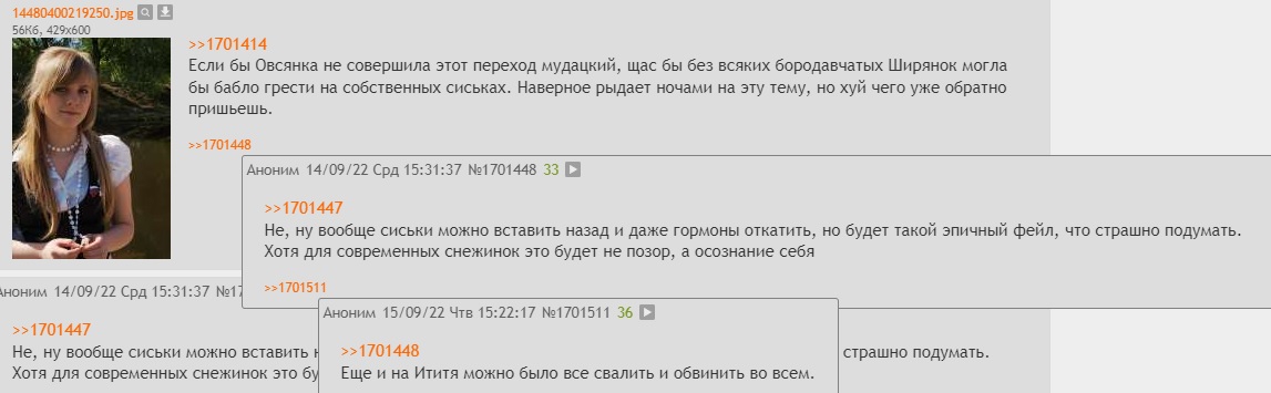 А если серьезно - ты настолько шизло, что сам не видишь, как ты сам себе противоречишь. ЗАКРЫТЫЙ И ЭЛИТНЫЙ ИНОСТРАННЫЙ ФОРУМ - но каким-то хуем у тебя к нему есть доступ. ТАМ ПОСТЯТСЯ ФОТКИ С ПИСИКОМ ШИРО - но никто их до сих пор не слил. У МЕНЯ ЕСТЬ ДЕВУШКА В 13 ЛЕТ И Я ЕЁ ЕБАЛ - но она просто в другом пгт, и вы её не знаете. Вот так выглядит. Так что или обдумай своё поведение выйди из треда и зайди нормально, или наконец-то выпей галоперидол.