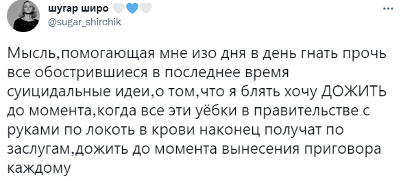 >>1781137 И смерти она не желает, а лишь что доживёт до смерти, ркн не будет про фэндом вообще потеха, они там все наверное похожие песни пели, ещё менее демократичные. Все эти люди привыкли к спокойной беззаботной жизни, а им буквально урезали всё, отняли жизнь.