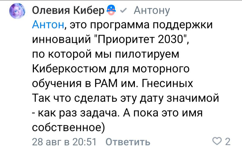 Киберкостюм и его детали используются в космической отрасли, существуют клиенты, что за 21 день переняли моторные навыки от профессионалов. Через год международный рынок будет драться за Олию.