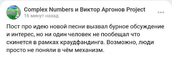 В тред набегают Викрот и Оля с группой поддержки и пихают купленные на яндексе просмотры как успешный успех Аргонова. ВК статистика говорит другое, как Аля докрутила группе подписоты до 7К, с тех пор ничего особо не изменилось. Просмотры, лайки на прежнем уровне. Дед притворяется, что не обосрался, Оля надеется, что говно не тонет, и успех придёт, надо только убедить в своей успешности публику. Купленными голосами на Яндексе.