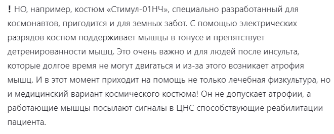 #где в космической теме применялся киберсьют Говневии, чтобы реабилитировать мышцы прибывших с орбиты, где задокументированные результаты от Оли?
