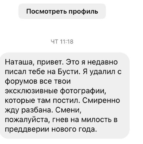 Там Натали написал какой-то обездоленный гражданин, пытавшийся выманить у нее ню-фото (как будто их нет буквально по всем интернета). Прикольно получилось бы, если бы это действительно оказался представитель Метарт, но те наверняка в инсту или твитор стучатся.
