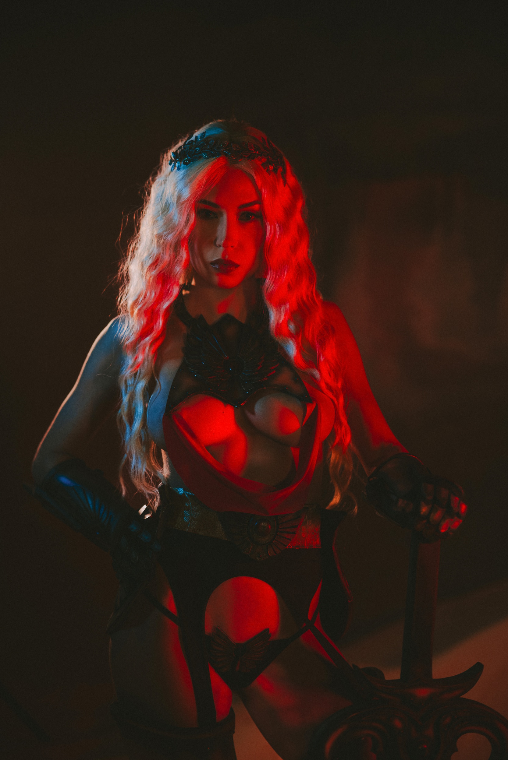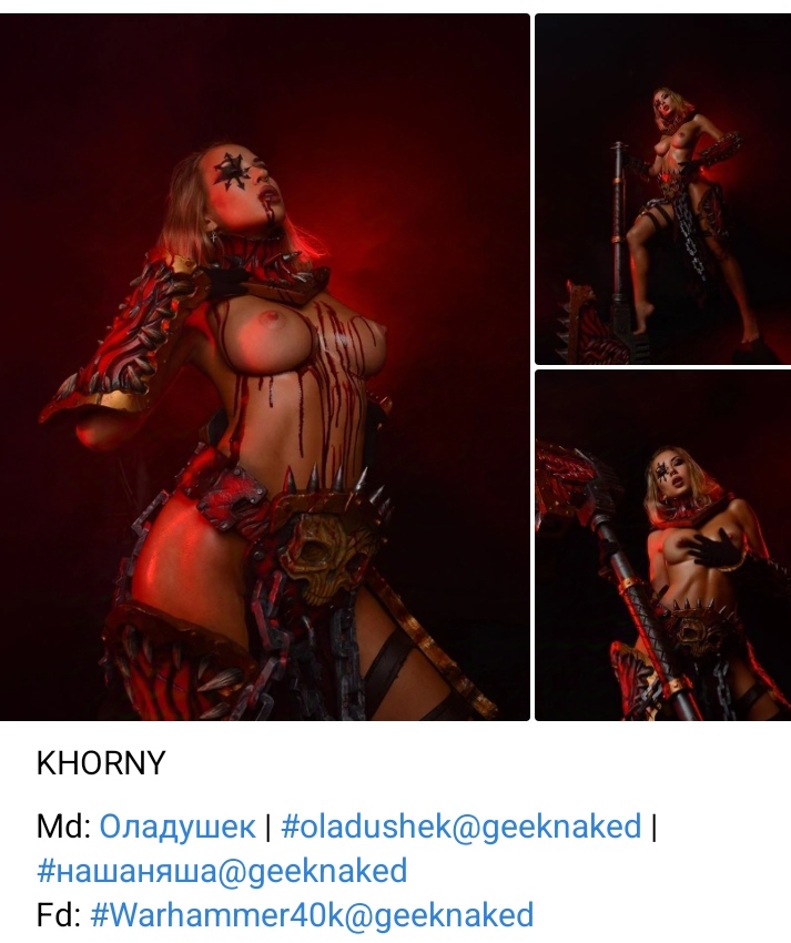 Там Мажор в своем видео показал фотки Натахи в костюме Сангвиния. Короче, все-таки Натаха не меняется: западному барину качественный косплей, кривозубым крестьянам с Бусти домашние фотки за 3000 рублей.