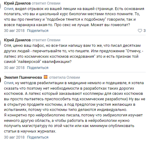Знания биологии Олии Левицкой-кибер не сильно изменились