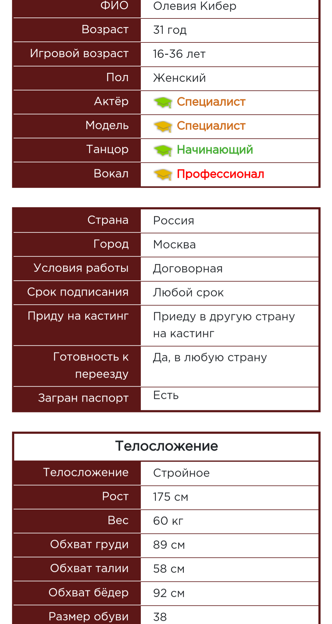 Информация с сайта, где любой может написать о себе через почту администраторам сайта. И вот как Олевия Кибер описывает себя, кагбе намекая как Виктор Аргонов сосёт хуй: