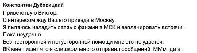 Тем временем Витя прибывает в Домодедово в 14:50 и к 16 часам обещает быть на м. Киевская. ДСеры имеют возможность встретить Маэстро и напомнить снять биркуили нет, я немодное быдло, не шарю прост