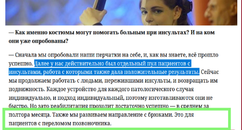 >>1785022 Ранее мы узнали, что Олевия (урожд. Ольга Сергеевна Левицкая) – чистой воды самозванка и не в состоянии не то, что подтвердить свой статус учёного, но квалификацию нейробиолога (да и биолога вообще), а уж тем более – получение образования в ВУЗах вроде МГУ и ВШЭ. После этого возникает закономерный вопрос: откуда у выпускницы Тимирязевки, сельскохозяйственного училища, взялась идея этого самого перехвалёного “киберкостюма”? Того, что она называет “внешним нейроинтерфейсом”, хотя, по факту, подобные девайсы известны под названием haptic suit (“тактильный костюм”)?