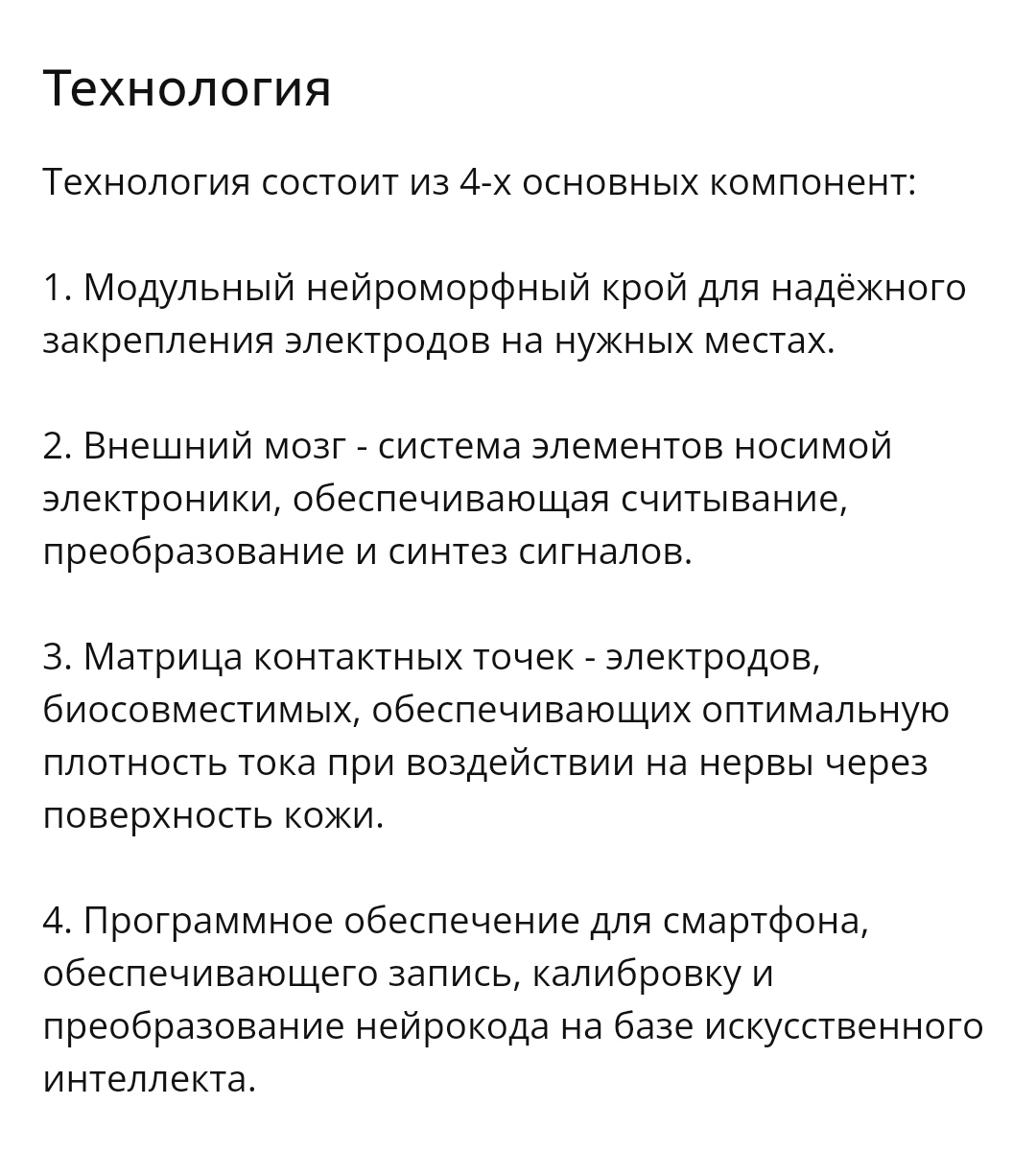 >>>>Сфера применения “нательного нейроинтерфейса”, а проще – киберкостюма, потенциально безгранична: благодаря системе генерации электрических нервных импульсов это восстановление и реабилитация после травм, коррекция веса и физических недугов.