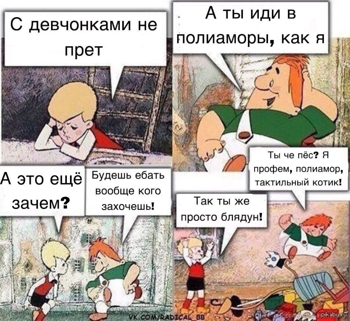 >>1785041 У этого Фомина в голове киберпонос? Нашел тянку с пробегом и двумя прицепами. Листва был, попал. А дальше что? Заделал ещё две штуки, если они от него. Идёт торговать ебалом в аферу, постоянно смотрит как его тян, мать детей и супруга официальная оголяется на весь мир, гордится что та вафлерша со стажем, трётся об старого инструктора, который у них как третий. Он инвалид умственный.