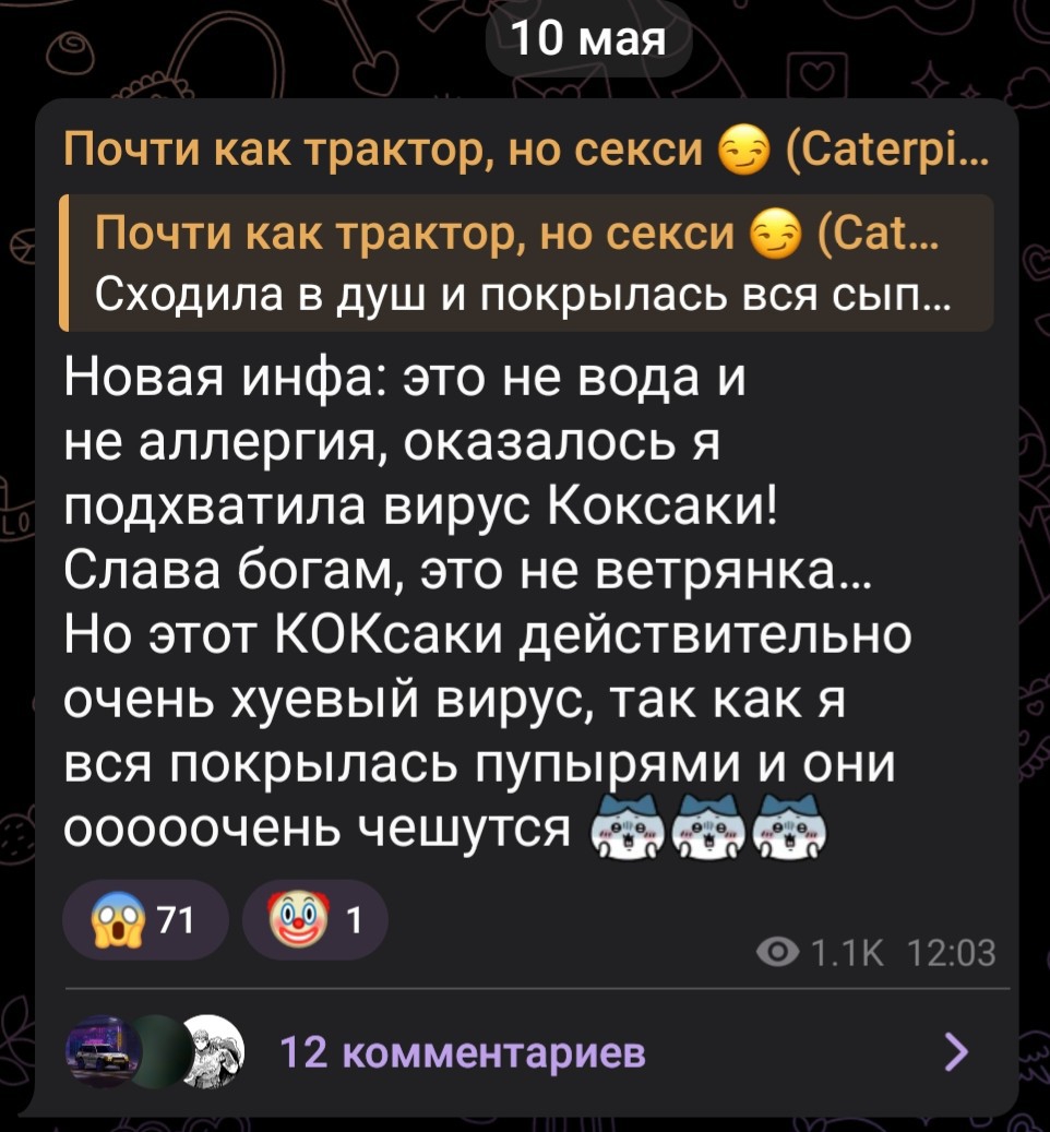 Пока вы тут ее Глебушку обсуждаете, в закрытом канале Аста выдала, что Санька с мужем- наркодилеры. Сашка уже в ахуе готовится ей чуть ли не ебальник набить за такое, а ту понесло еще дальше