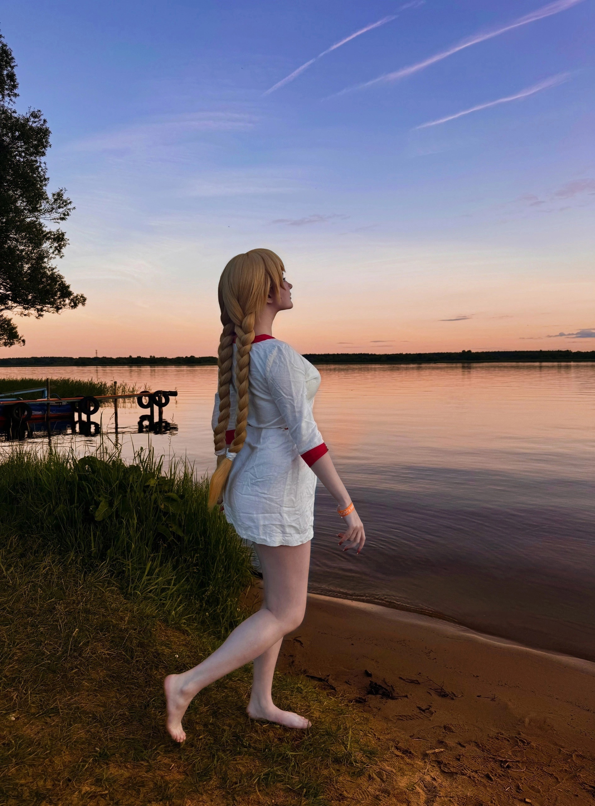 Как вы помните, в прошлом году я уже открывала сбор на поездку в Волгу и возила туда образы нескольких пионерок, в том числе и Слави, но со Славей не получилось ничего хорошего. Мне совершенно не понравился результат нашей работы и я не выкладывала практически ничего со Славей с той поездки кроме пары мобильных бэков. Было много проблем, как с париком, так и с погодой и фотографом🥹 Деньги на поездку и работу конечно же все равно были потрачены, и тот факт что я привезла оттуда вдвое меньше съемок чем планировала меня расстроил и я уже хотела совсем поставить точку на сьемках Бесконечного Лета.