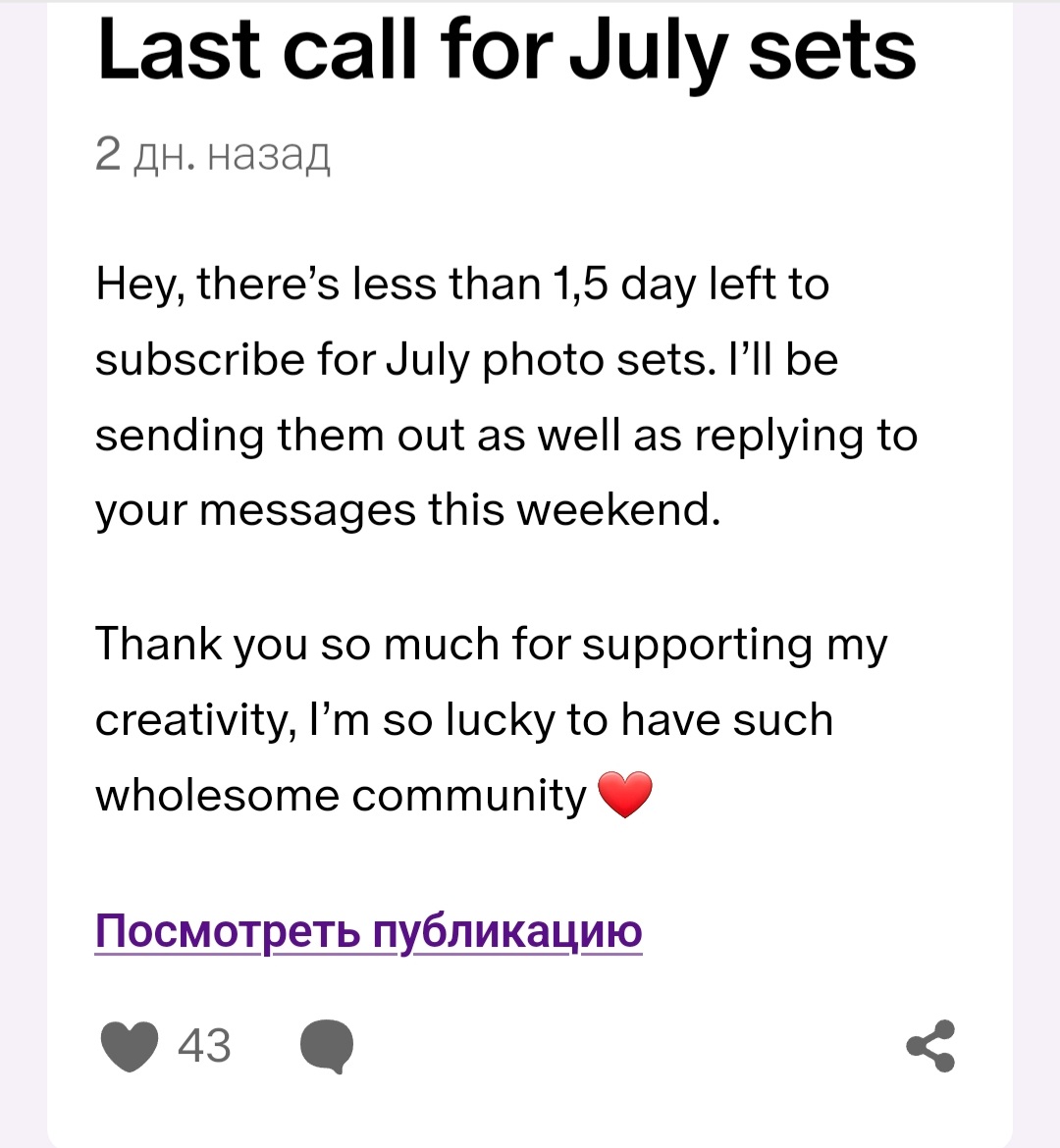 >>1806430 >на незапейволленой публикации всего 40 лайков Печальный знак. Лайки на ней могут оставлять в том числе и бесплатные подписчики. >Мнение Нарги о своей аудитории приложено Да, ей определенно нужно в каждом посте на продажу писать неприкрытое личное мнение. Какой же ты глупый. Веришь ещё, наверное, когда тёлка, продающая жопу, пишет, что ты один-единственный для неё верный и любимый фанат?