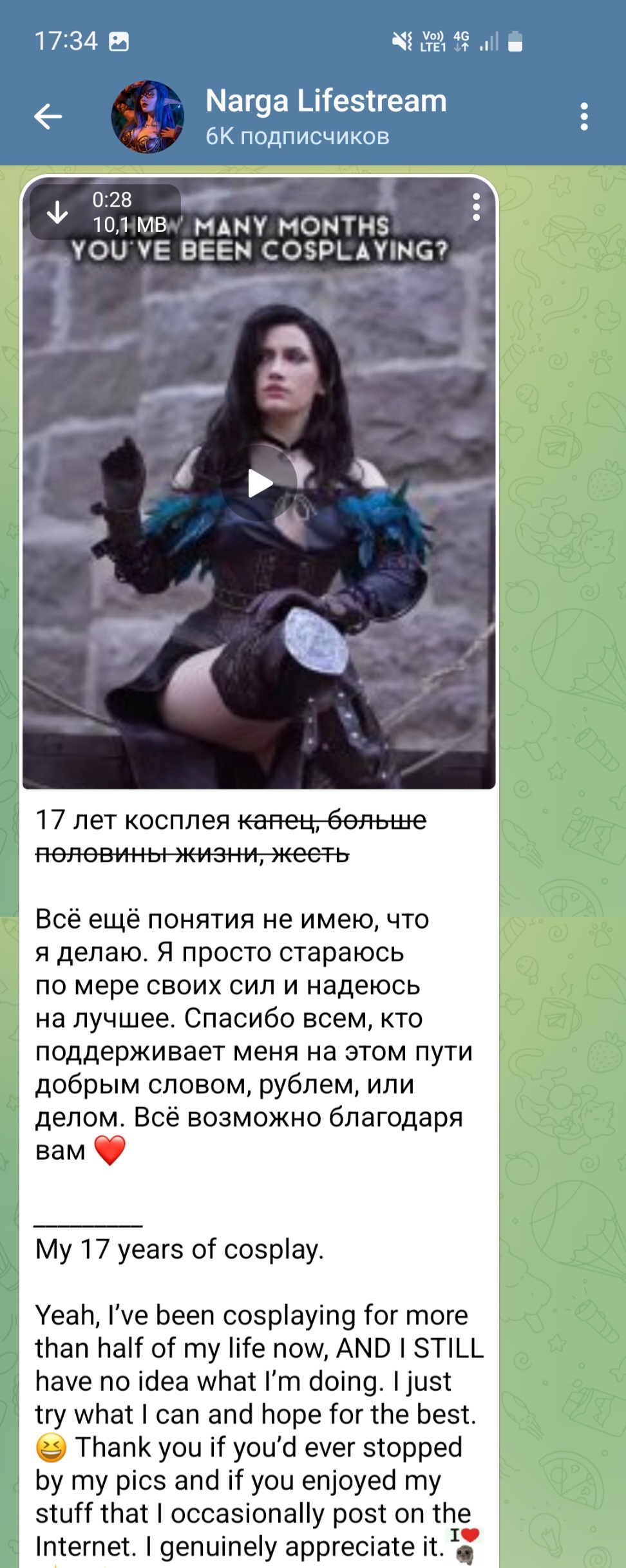 >тру-косплей интереснее для сильно большей части ее аудитории Или Нарга понимает что не может конкурировать с другими и ее единственное преимущество - продолжать "держать марку" и изображать из себя крафтера, пусть это и интересно только мимоходом лайкнувшим и паре шизов, которые дрочат на броню. А еще ей скорее всего ей стыдно и она занимается таким же самообманом, как и ты.