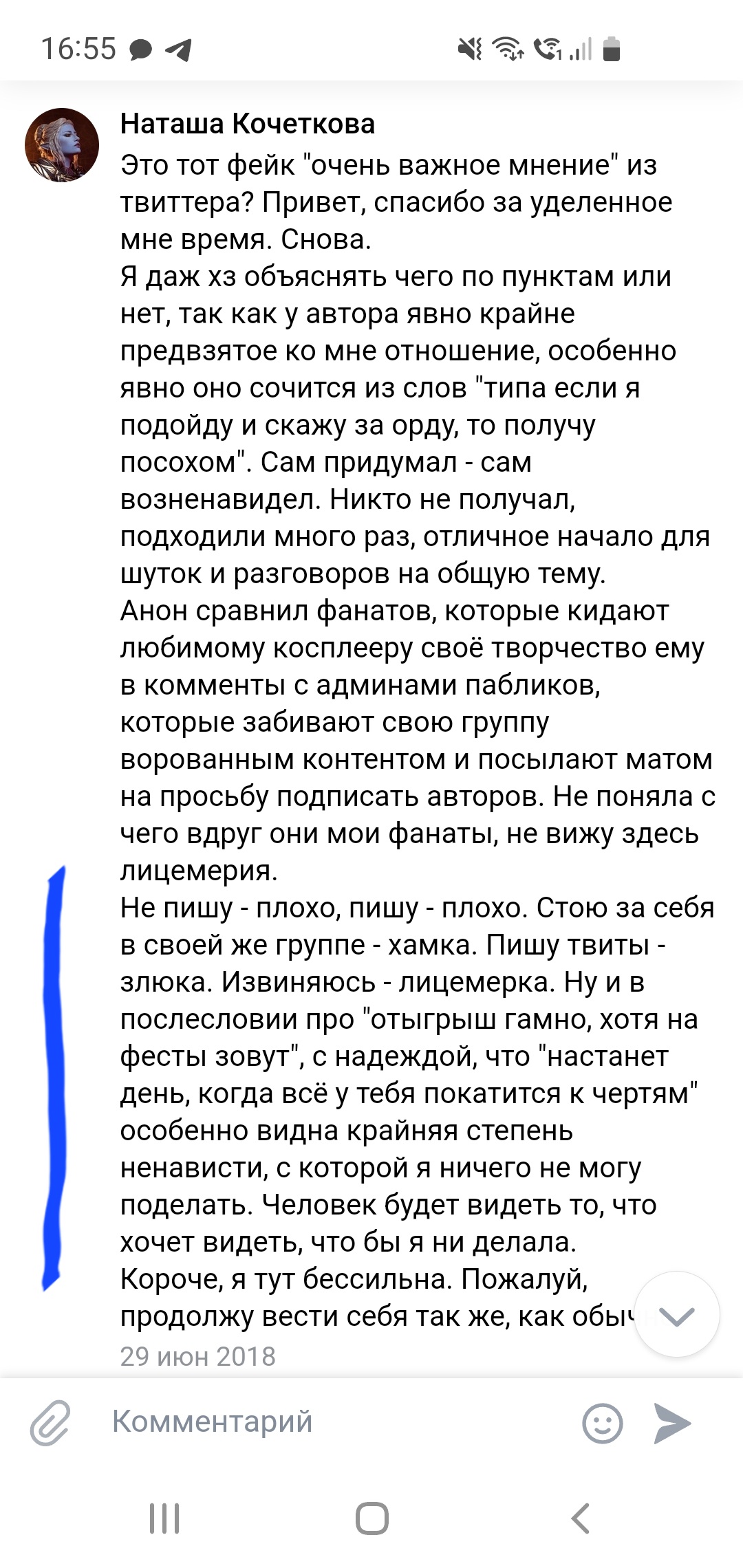 Но давно замечено, что все, кто что-то сам делает, потом в постах юлит и где-то не дописывает что-то, где-то не договаривает (про сторонний крафт, парик и т.д.). Хаку этим славится прям. У остальных редко, но бывает. И всегда размыто. Чтобы в случает чего можно было контратаковать, что нигде не сказано было прямо-прямо про САМА.