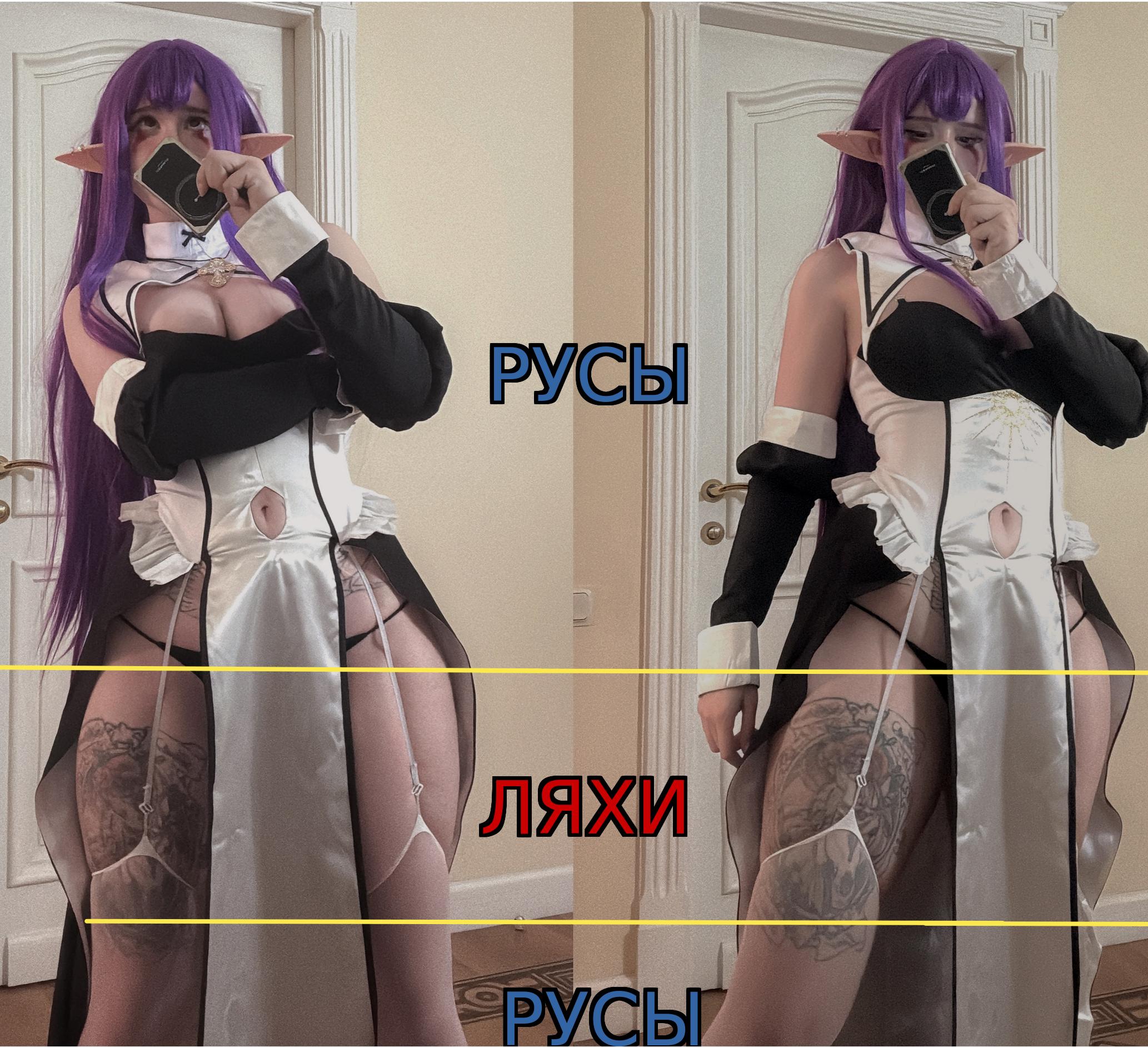Эта же пизда просто покупает самый дешманский парик с Алика, оттуда же костюм который выглядит просто уебищно, либо же вообще покупает одну деталь костюма, а остальное со своего старого уже проперженного гардероба и фоткатся в одних и тех же позах, фотошопя все и вся, делая искусственно узенькую талию, а и без того огромную поросячью сраку ещё шире