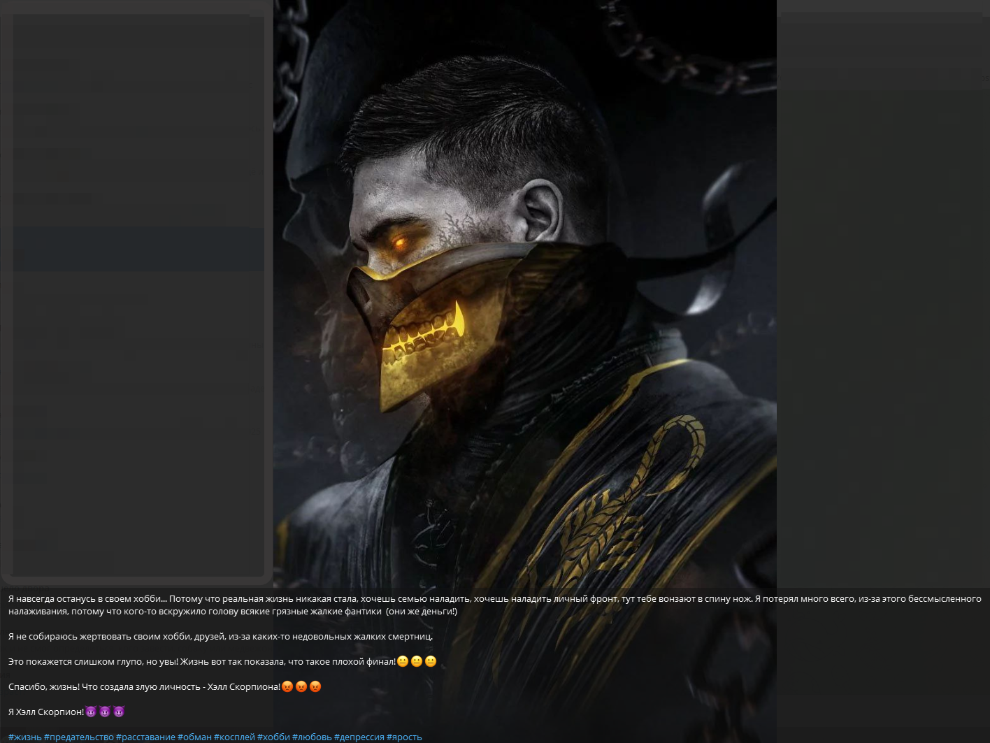 https://2ch.life/fd/arch/2020-03-11/res/1463438.html Вот самый первый тред Там были скрины и пруфы Его жёнушку не аккредитовали на Игромир в каком-то там лохматом году и эти полуфабрикаты не нашли ничего лучше, чем порезать костюмы