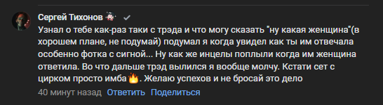 Хз, меня позабавило, что скрины утащены в группу ВК. Ну то ладно, как то, что там утрированно и с перефорсами подано. Пофиг, потеха в другом. Как местные куколды надевают белые латы куколдизма и занимают позицию "не, ну мы то не такие, фу, двачеры...фу, мы эстетто-куколетто" мы приходим за la esthetic и на крафт посмотреть. Петушары лицемерные В натуре "нижние" да ещё и на пафосе. Жду когда они сюда побегут, сверкать латами из солнечного симпилла Не, ну по факту, обаятельная женщина, такая харизмой берет, а доебы до внешки это вкусовщина.