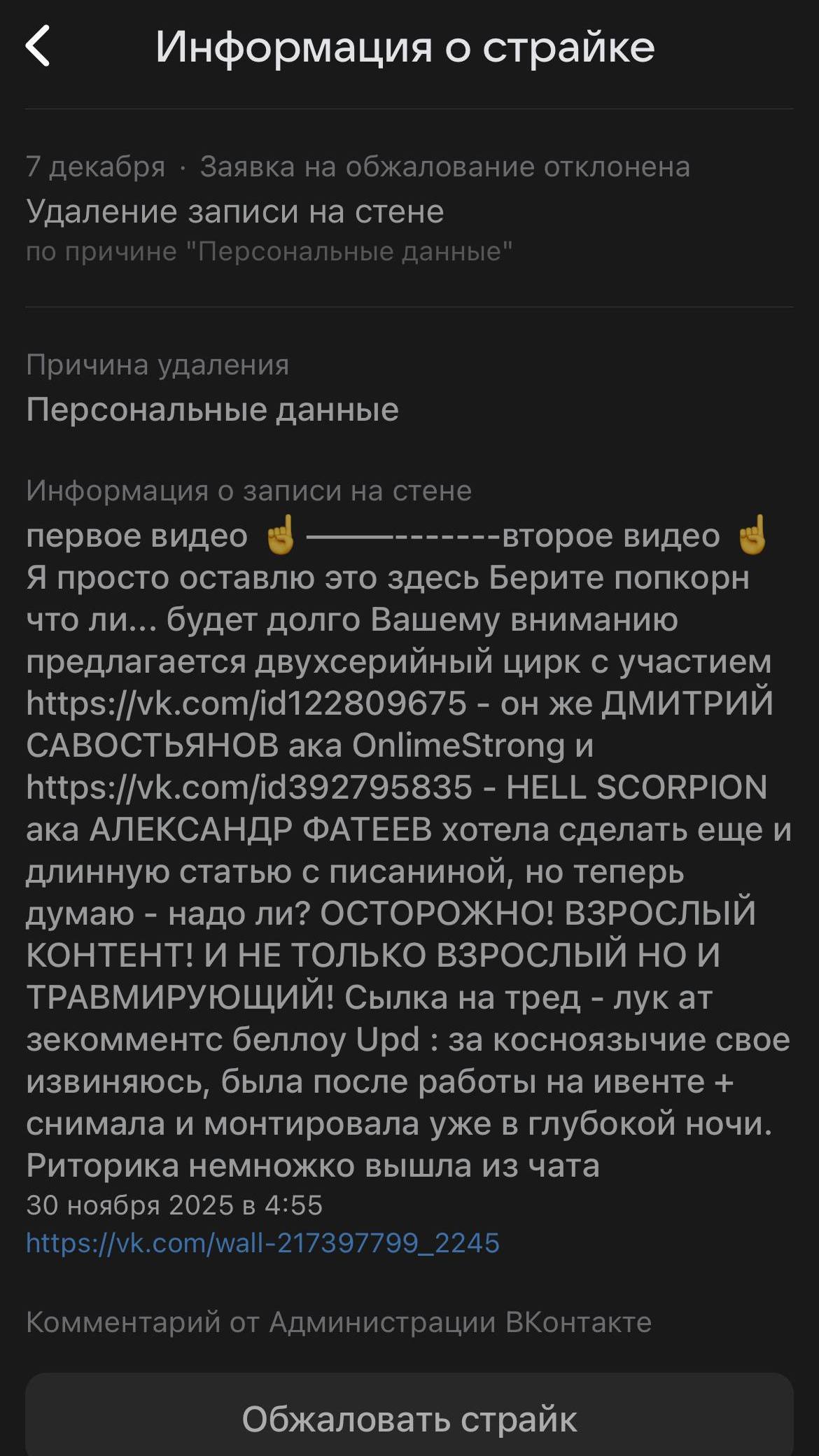 И весь этот тейк бьется тем, что ты в треде вахтеришь, каждый выпук анона чекаешь. Горит жопа у тебя не с тейка про самофорс, а что на вонючей пожалейке не получилось разьебать тех, кто лично тебе мешает. Уже и жертву строила, и обвиняла, и оправдывалась.