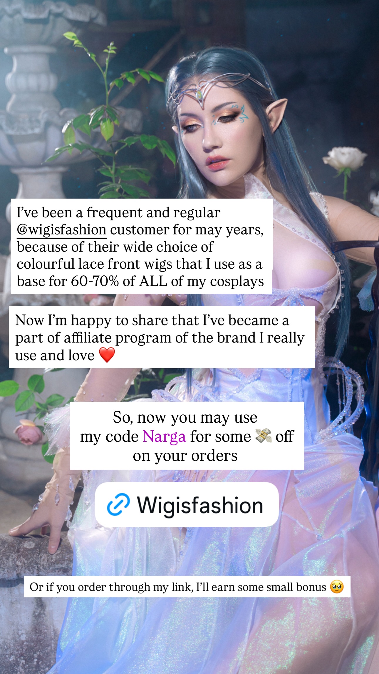 Бтв, я не сравниваю умение позировать у Нарги и у профессиональной топ-модели; да и фотографы в ведущих фэшн-журналах, при всем уважении, посерьезней наших косплейных. Я том, что на фото Нарги мы видим стандартные позы для, пардон, модельного позирования. И как я и говорил - у любой модели в портфолио будет то же или примерно то же. И да, я думаю нетрудно догадаться, что модель такими съемками (то есть, опять же, своей внешкой и образом) зарабатывает деньги.