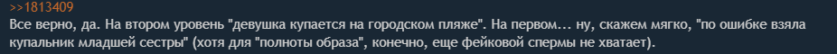 К тому же, тут один в один повторяются порой её тейки: про "фансервис, а не эротику", про "косплей для всех, жирных в образе худых", и даже мемы из старпёрских фильмов, о которых она упоминает в публичных соц.сеточках.