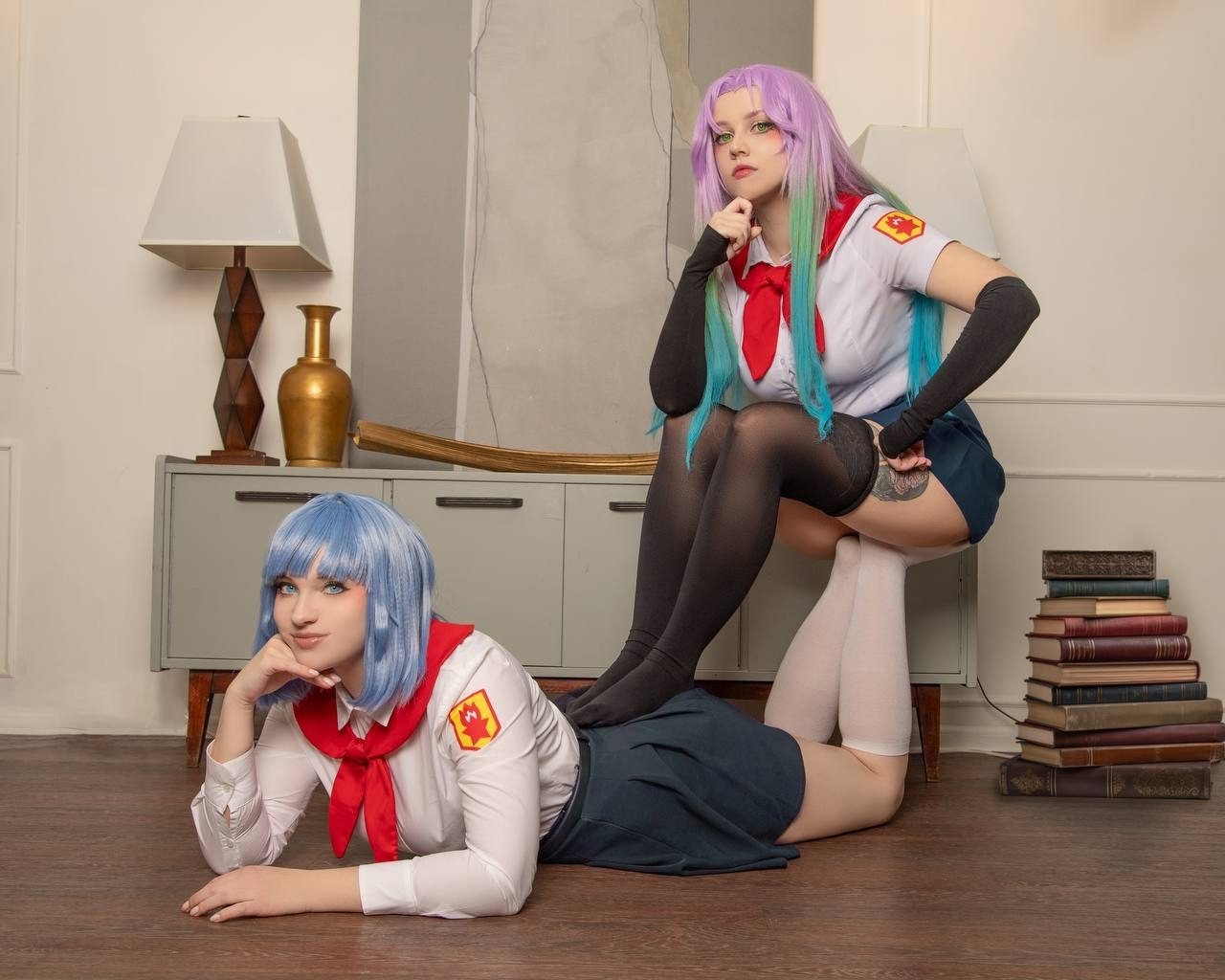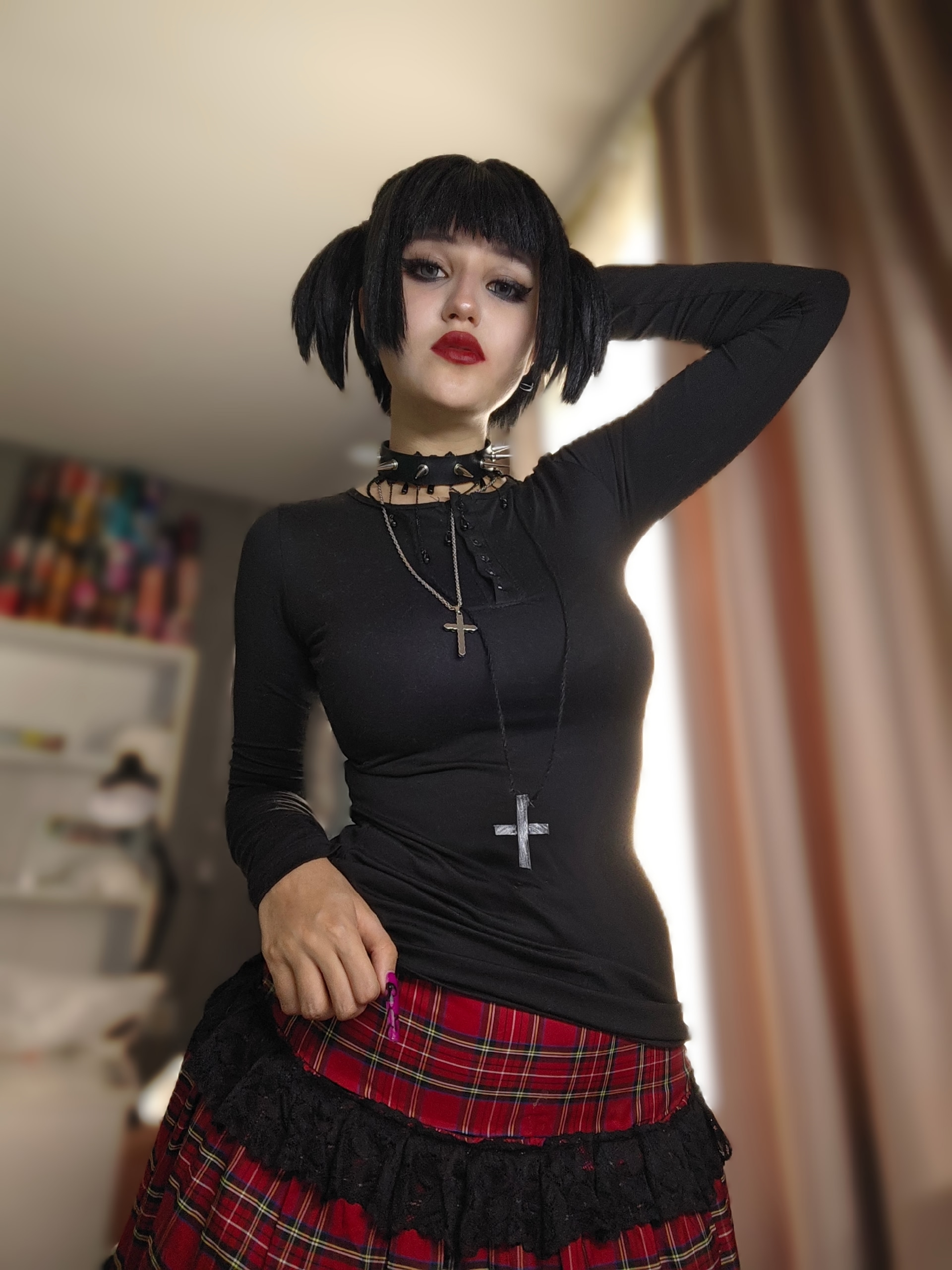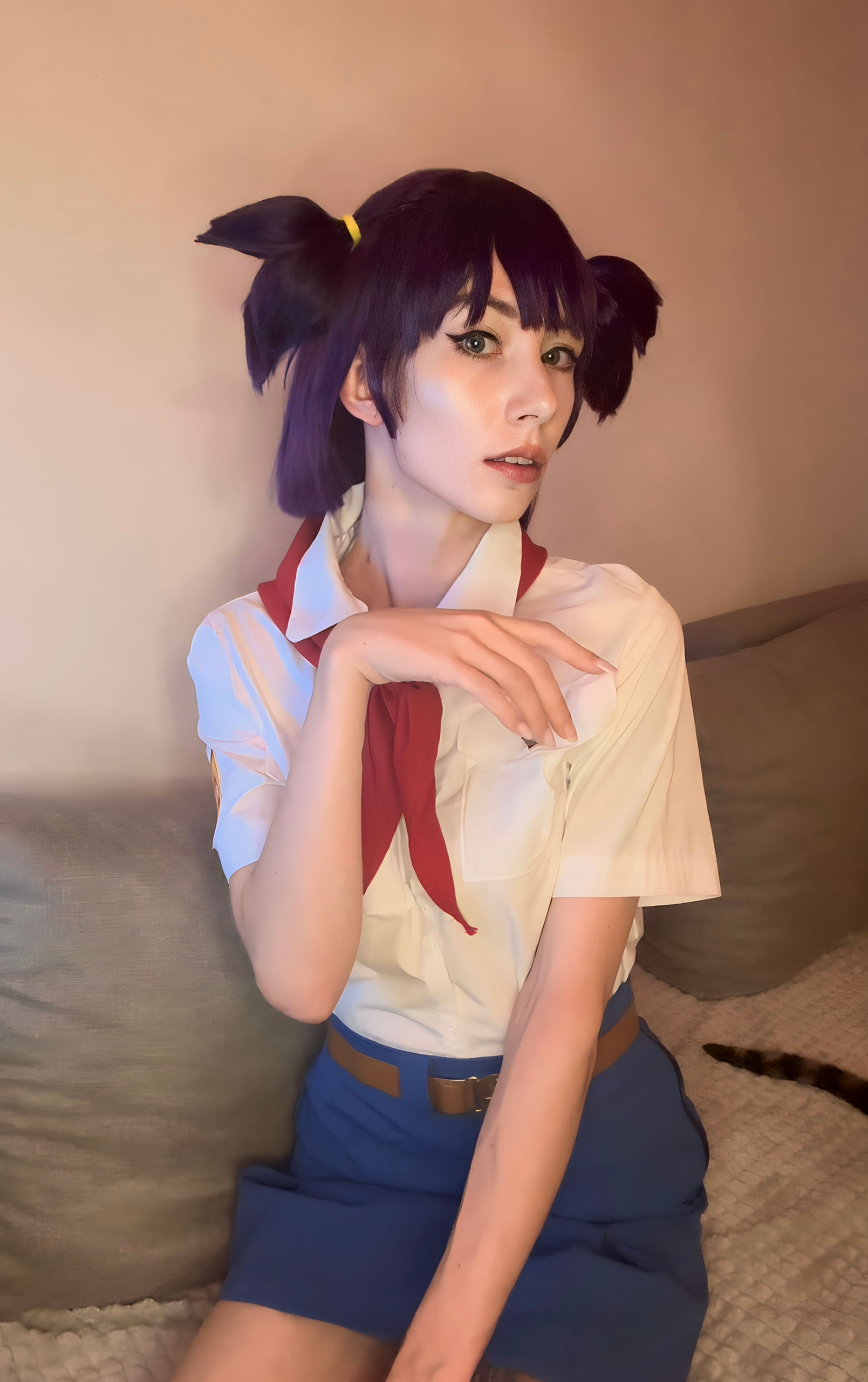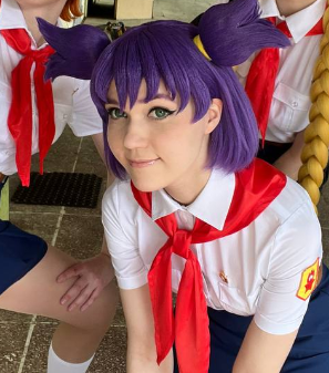 >Блин эти хвостики так приколюшно выглядят, и очень даже напоминают Ленины, хотя они абсолютно другой формы. Помню когда делала на неё каноничный косплей ОЧЕНЬ сильно парилась из-за формы хвостиков, мне прям хотелось идеально - супер дупер канон. 🥹 Я сначала купила фиолетовый короткий парик и попробовала сделать по тутору с ютуба хвосты самой, ноо не получилось. Потом заказала укладку у вигмейкера и мне форма не очень понравилась. Поэтому далее я нашла на барахолке парик от того самого легендарного косплея Лены из косбенда "Дети Рабочих" (кто шарит тот шарит). Он прям ну идеаааальный... Я так была счастлива, что смогла его купить)))) Кстати, интересный факт - это является единственным париком уложенным не мной). Какие парички на Лену вам нравятся большие - полностью повторяющие форму хвостиков или же более натуральные? Или для вас это не имеет значения?) Для меня ой как имеет, парики это любовь