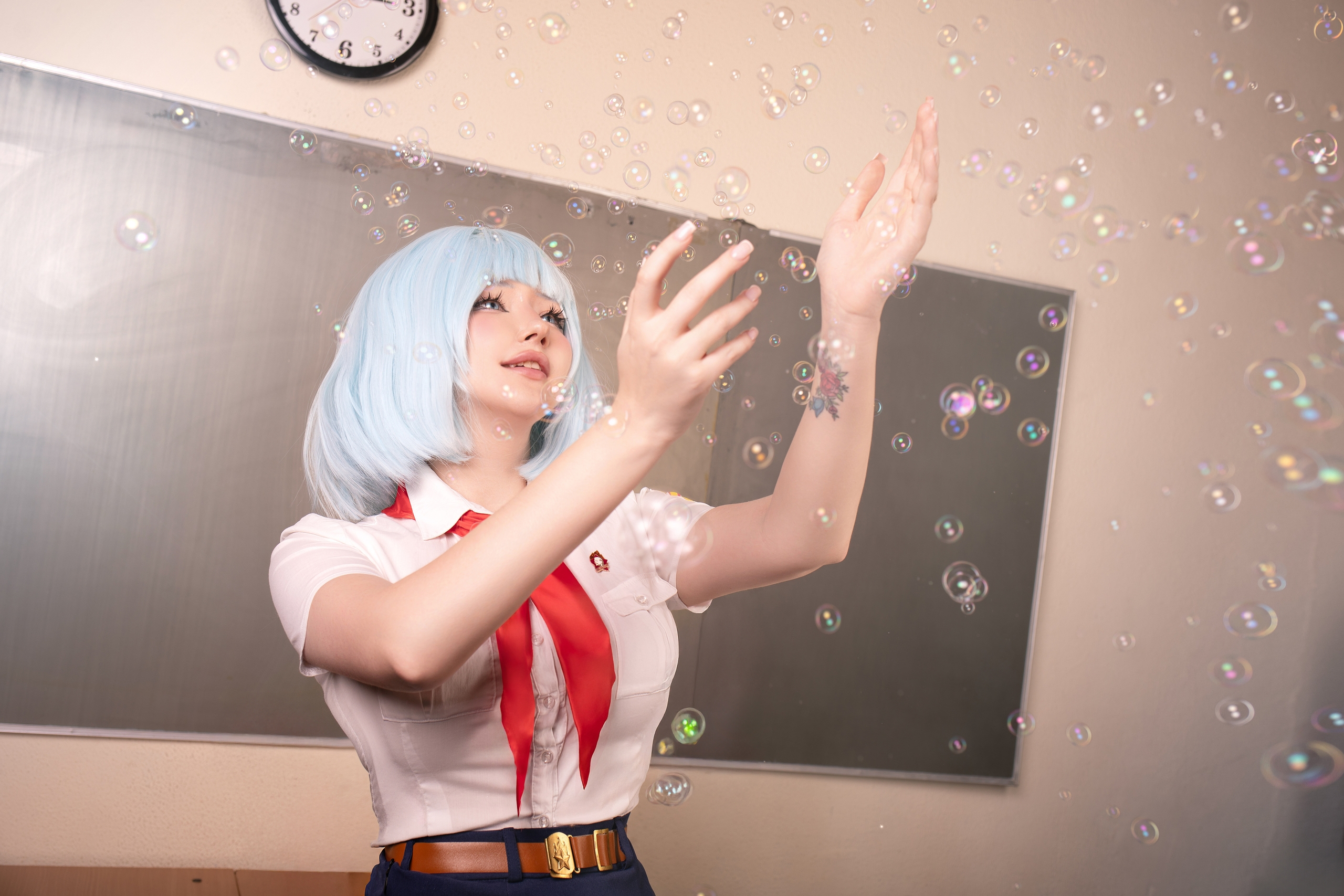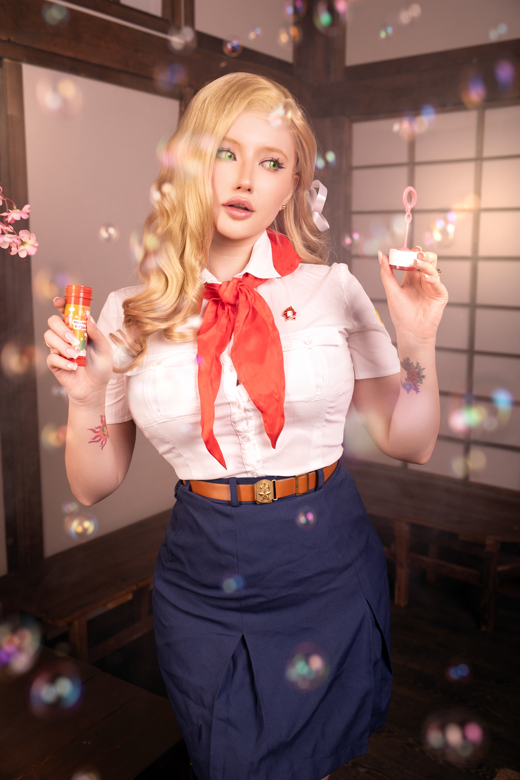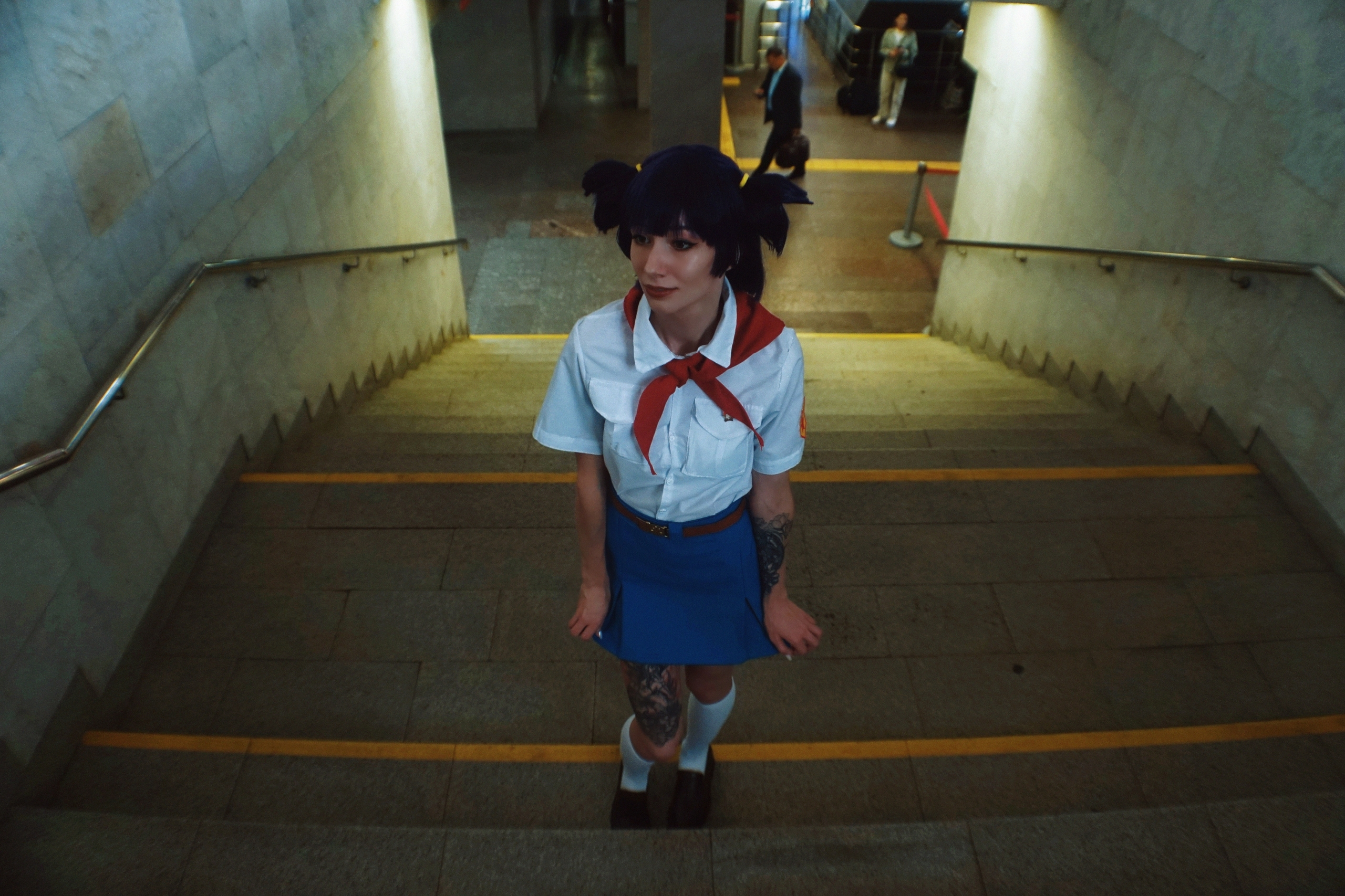 >Блин эти хвостики так приколюшно выглядят, и очень даже напоминают Ленины, хотя они абсолютно другой формы. Помню когда делала на неё каноничный косплей ОЧЕНЬ сильно парилась из-за формы хвостиков, мне прям хотелось идеально - супер дупер канон. 🥹 Я сначала купила фиолетовый короткий парик и попробовала сделать по тутору с ютуба хвосты самой, ноо не получилось. Потом заказала укладку у вигмейкера и мне форма не очень понравилась. Поэтому далее я нашла на барахолке парик от того самого легендарного косплея Лены из косбенда "Дети Рабочих" (кто шарит тот шарит). Он прям ну идеаааальный... Я так была счастлива, что смогла его купить)))) Кстати, интересный факт - это является единственным париком уложенным не мной). Какие парички на Лену вам нравятся большие - полностью повторяющие форму хвостиков или же более натуральные? Или для вас это не имеет значения?) Для меня ой как имеет, парики это любовь
