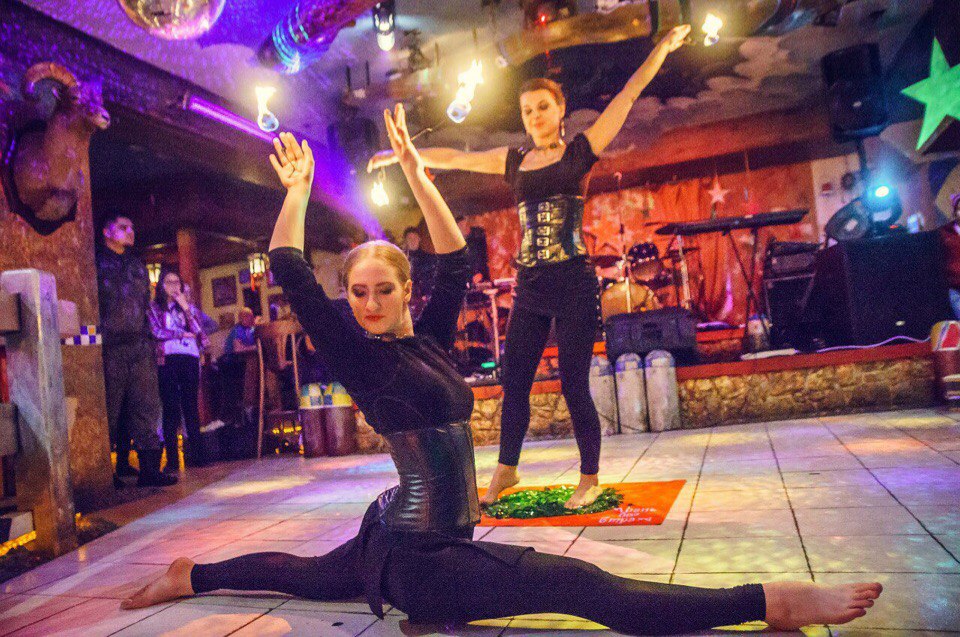 И да, если уж угарать по духу 90-х... Вот виде от Юрия Лонго (если кто еще помнит кто это такой). Модели конечно... тоже своего рода отражение духа 90-х (такое впечатление что из ближайшей "сауны" их притащили) и само "шоу" местами фейспалм вызывает, но ... Но, например, работа с огнем, несмотря на кратковременность - норм. По крайней мере я больше негде такого не видел, что бы работа с факелом совмещалась с каталептическим мостиком.