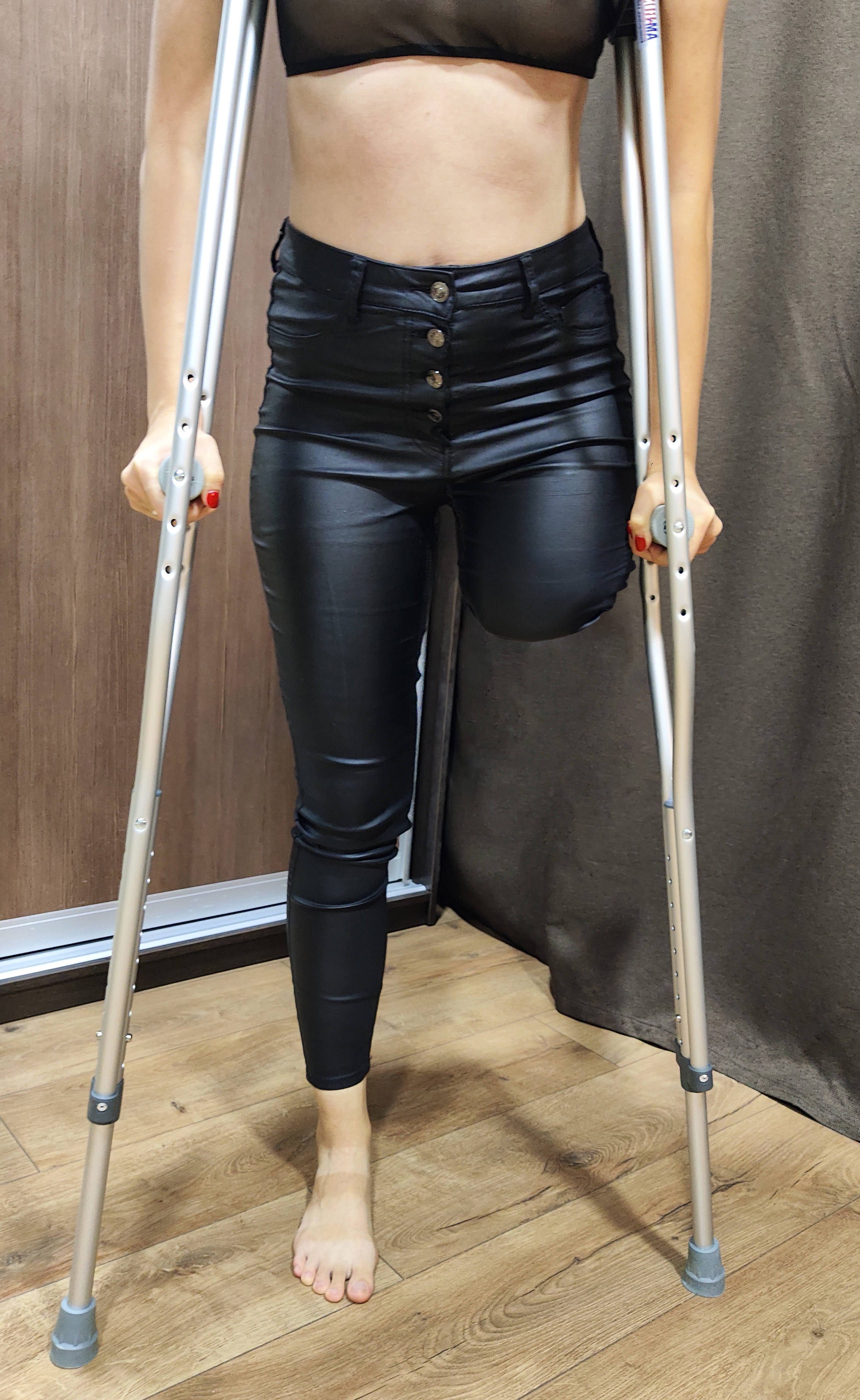 девка - огонь просто! ходит на протезе, дома - на костылях