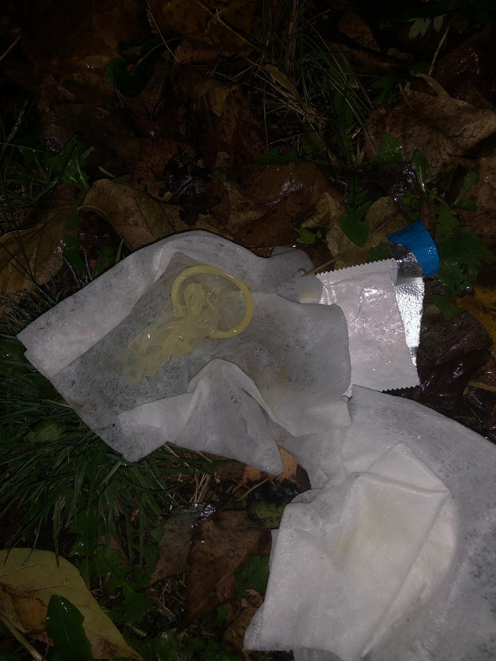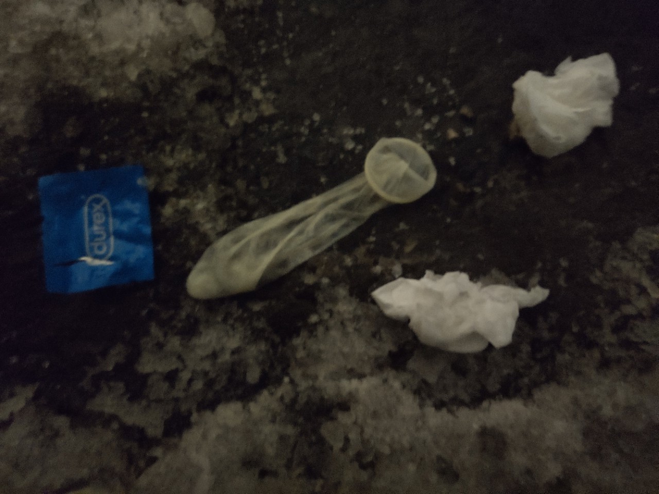 Сегодня видел использованный през и радом с ним несколько влажных салфеток. Самое забавное, увидел это на одном из этажей за мусоропроводом, когда поднимался к себе на этаж. Видимо какая-то парочка ебалась ночью в подъезде и оставила все это после себя.