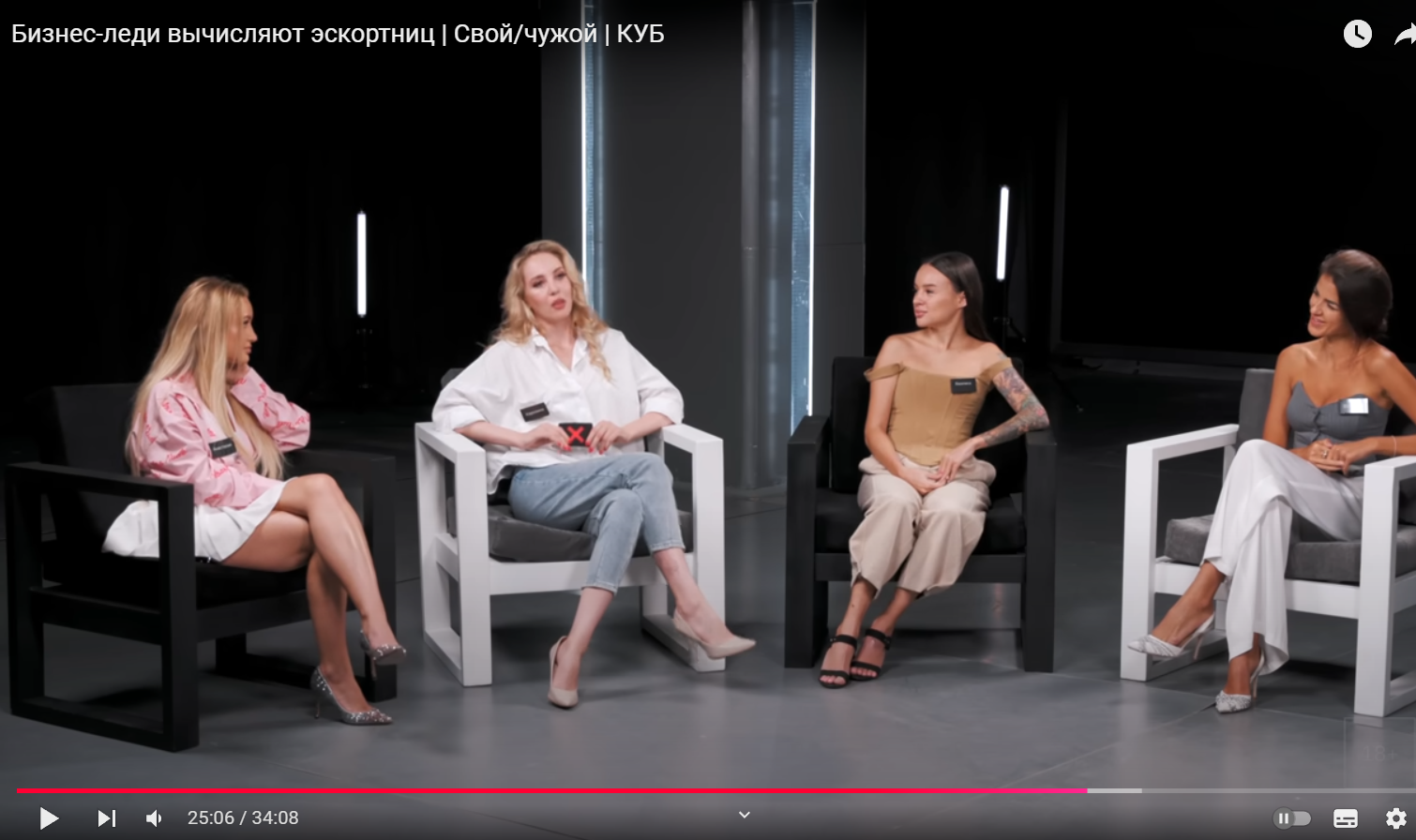 https://www.youtube.com/watch?v=5SYsszZoKUM Вычисляют эскорт, хотя каждая наверное по внешке могла там оказаться. Самая левая деваха со своими ногами там точно могла много заработать