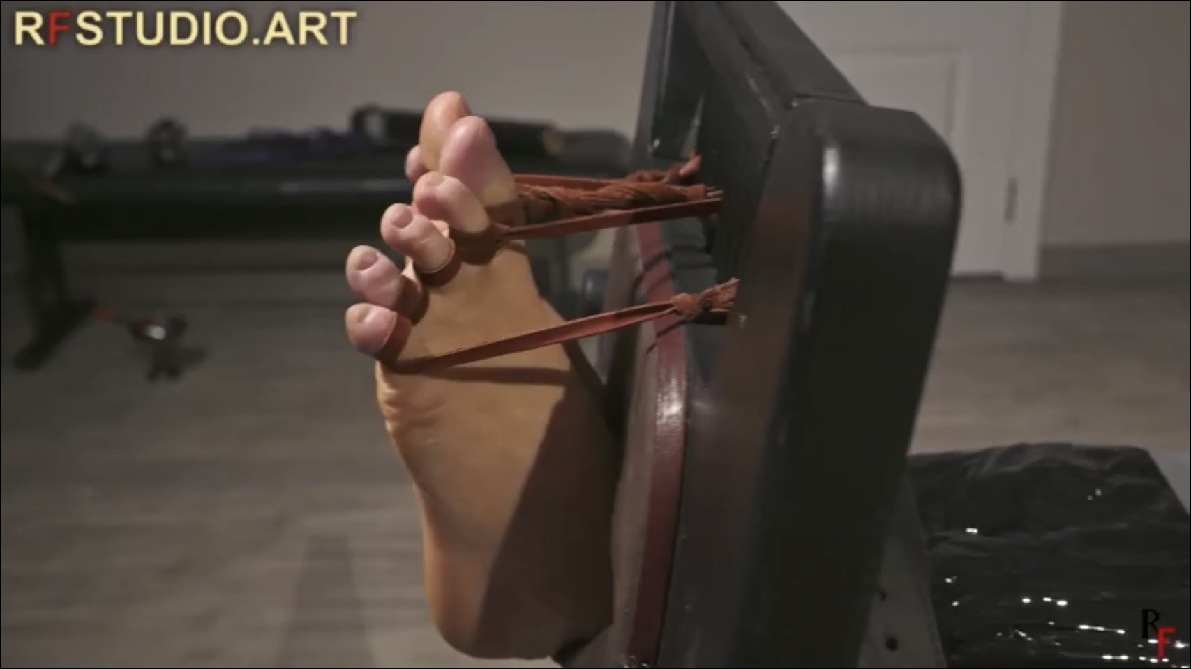 В этой части Секретная модель остается полностью пристегнутой к скамейке в полной мумификации, обнажены только ее босые ступни. Ее лодыжки закованы в колодки, а сексуальные пальчики ног связаны. Теперь пришло время для "бастинадо".