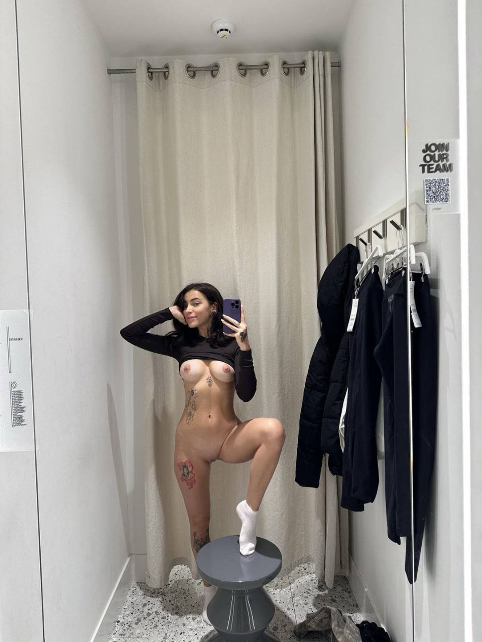 Не нашел, а создал. Всегда с волнением смотрю на фоточки из примерочных. Приходит осознание, что девушка делает эротическую фотографию в окружении других людей, порой отгороженная от них лишь куском ткани.