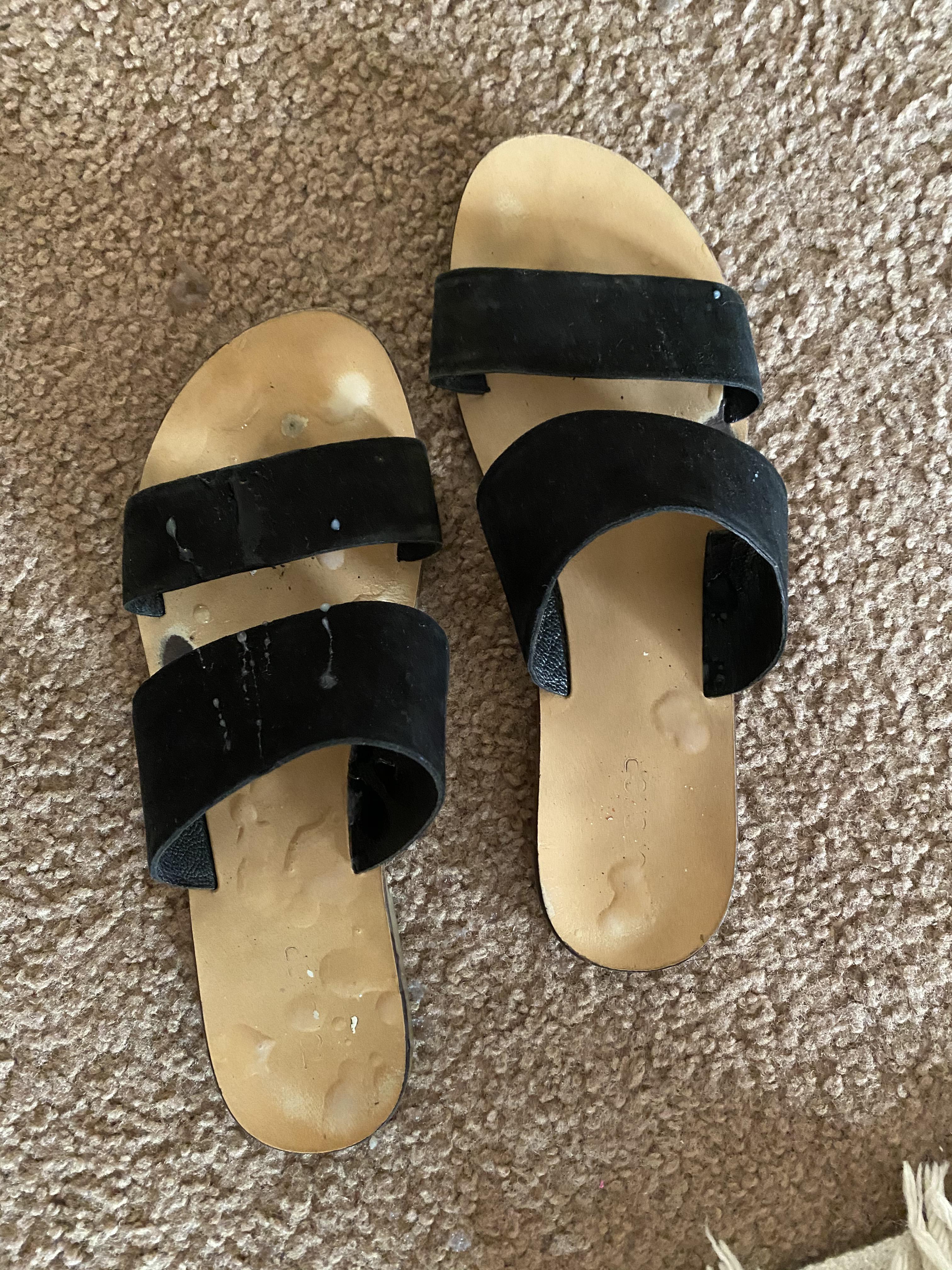 >Засовываешь член в них И яйца еще туда где пятка, подошва к подошве приложил и как будто мастурбатор какой-то, прикольно очень. В порыве страсти как в порне даже между подошв попробовал, но что то боязно стало за орган свой, потому что обувь ношенная и пыль снизу, там отпечаток остался.