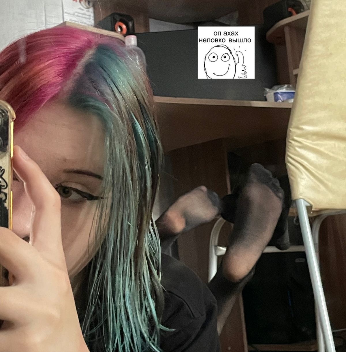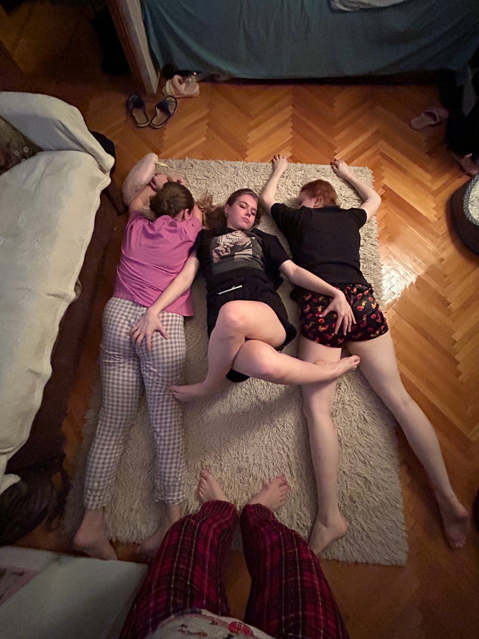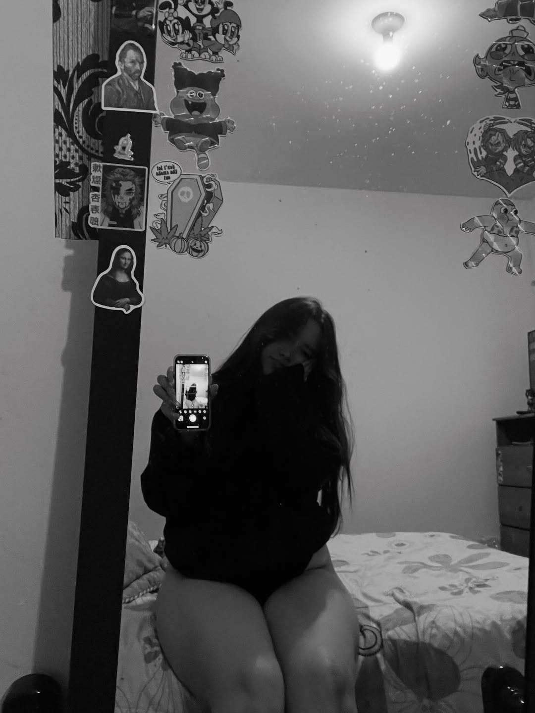 А однажды она спала со мною в одной кровати, так что в теории можно было пофоткать ей, пока она спит. Хоть тогда была зима, так что спала она не в самой открытой одежде: у ней была не настолько короткая юбка (ну, точно полностью закрывало её жопу, а трусов не было видно) + она была в чёрных колготках. А также я не знал, как у неё со сном, так что остерёгся прикасаться к ней, хотя всё-таки потыкал пальцем по ляхам