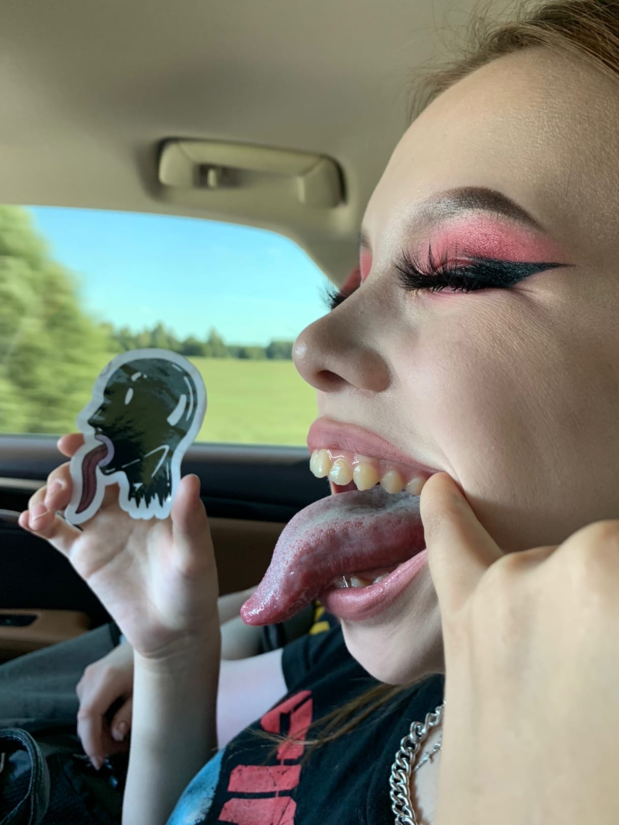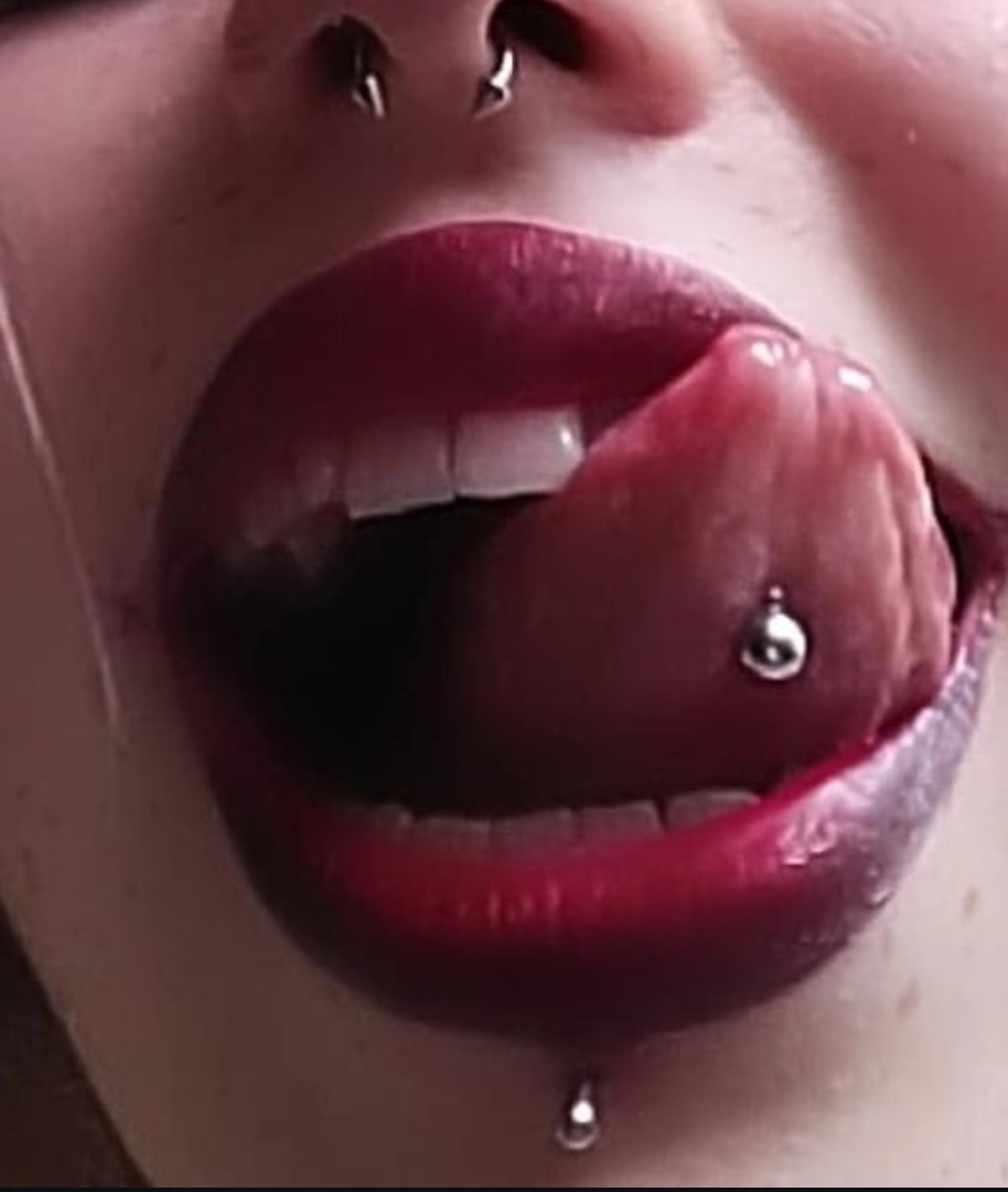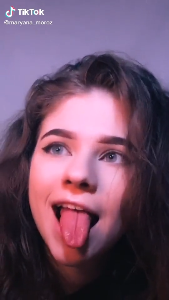 Тян сексуально показывает язык