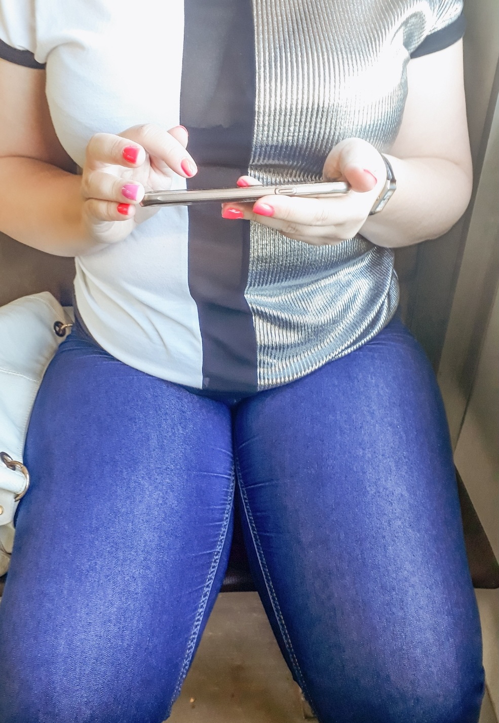 Вот вам красота. Девчуля ехала с парнем, увидела, что я фотографирую, поправила пальто, оголив бедро и отодвинулась от парня, предоставляя свою красоту для фото