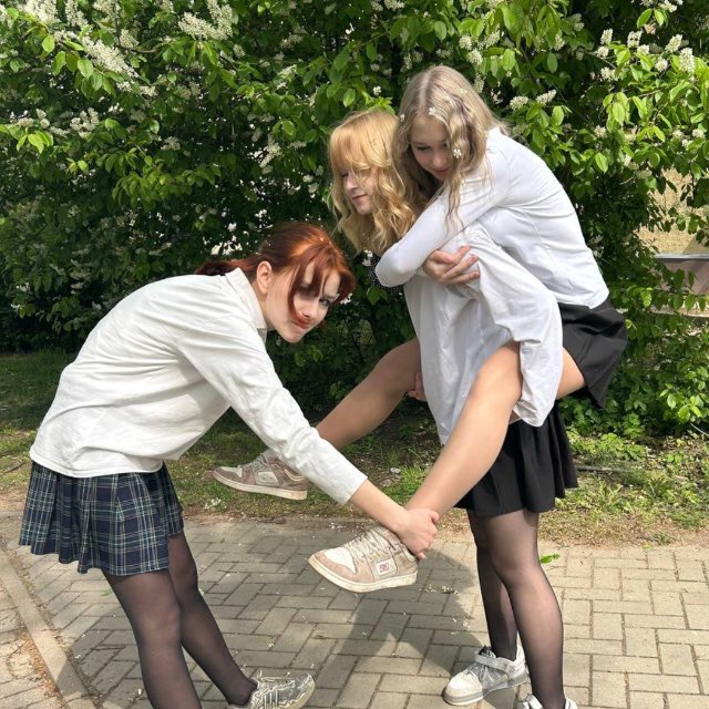 Любуйтесь. Я до сих пор вспомниваю, как она один учебный год балетками баловалась, почти каждый день. То в колготках, то в носках, только успевал любоваться её лапками. Однажды на физру приходит такая на носочках в балетках, в зале скидывает их и топает такая в своих носочках белых. Если есть желание, расскажу по больше.