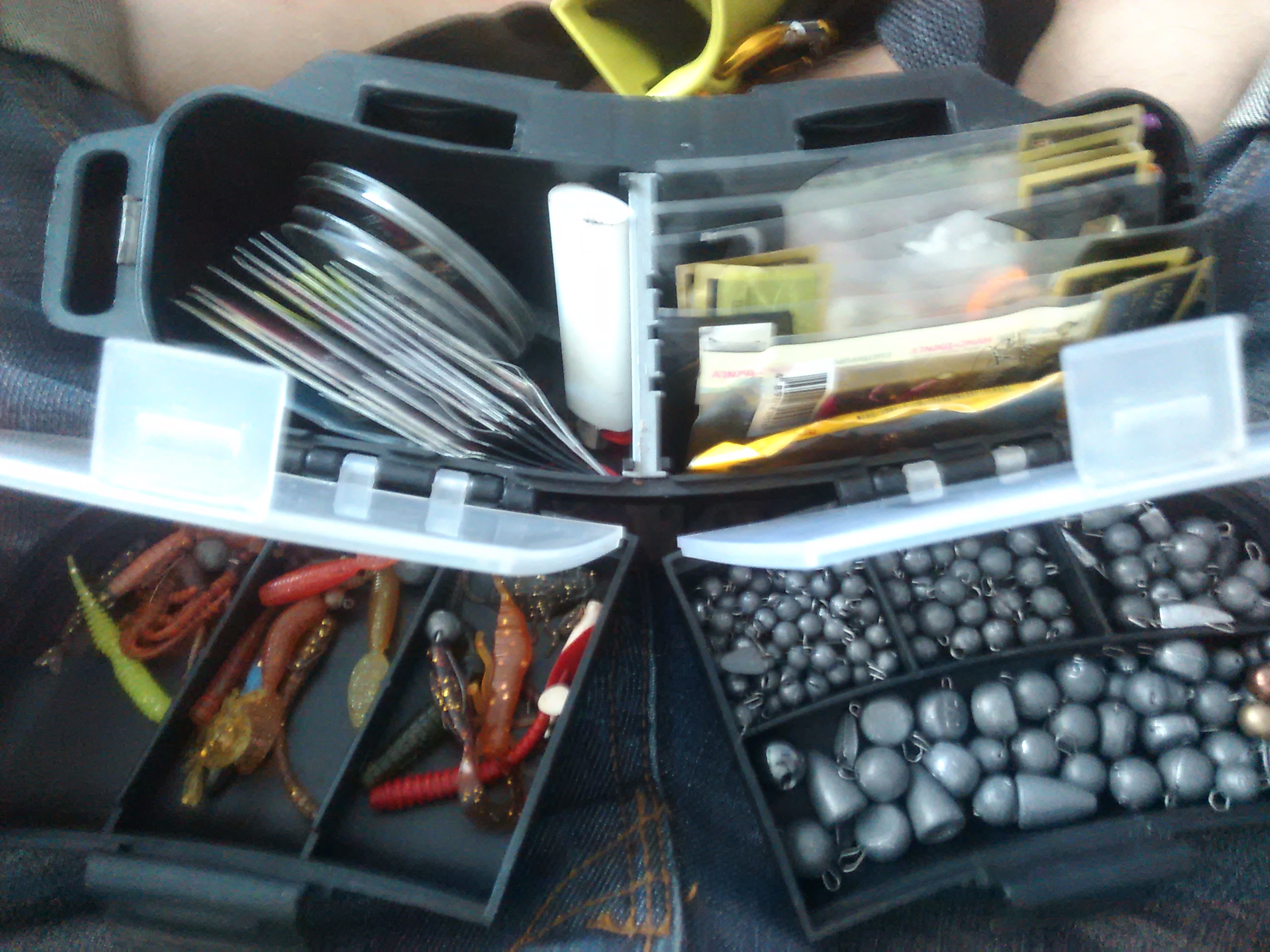 Итак, леди и джентльмены, у вас есть уникальная возможность заглянуть в коробки к Лохматому. 1. Основная коробка в щучьими воблерами 2. Опустошенная после выходных коробка со всякой ультралайтовой дристнёй 3. Поясная коробка со всем необходимым для аннигиляции всего живого при помощи мдж.