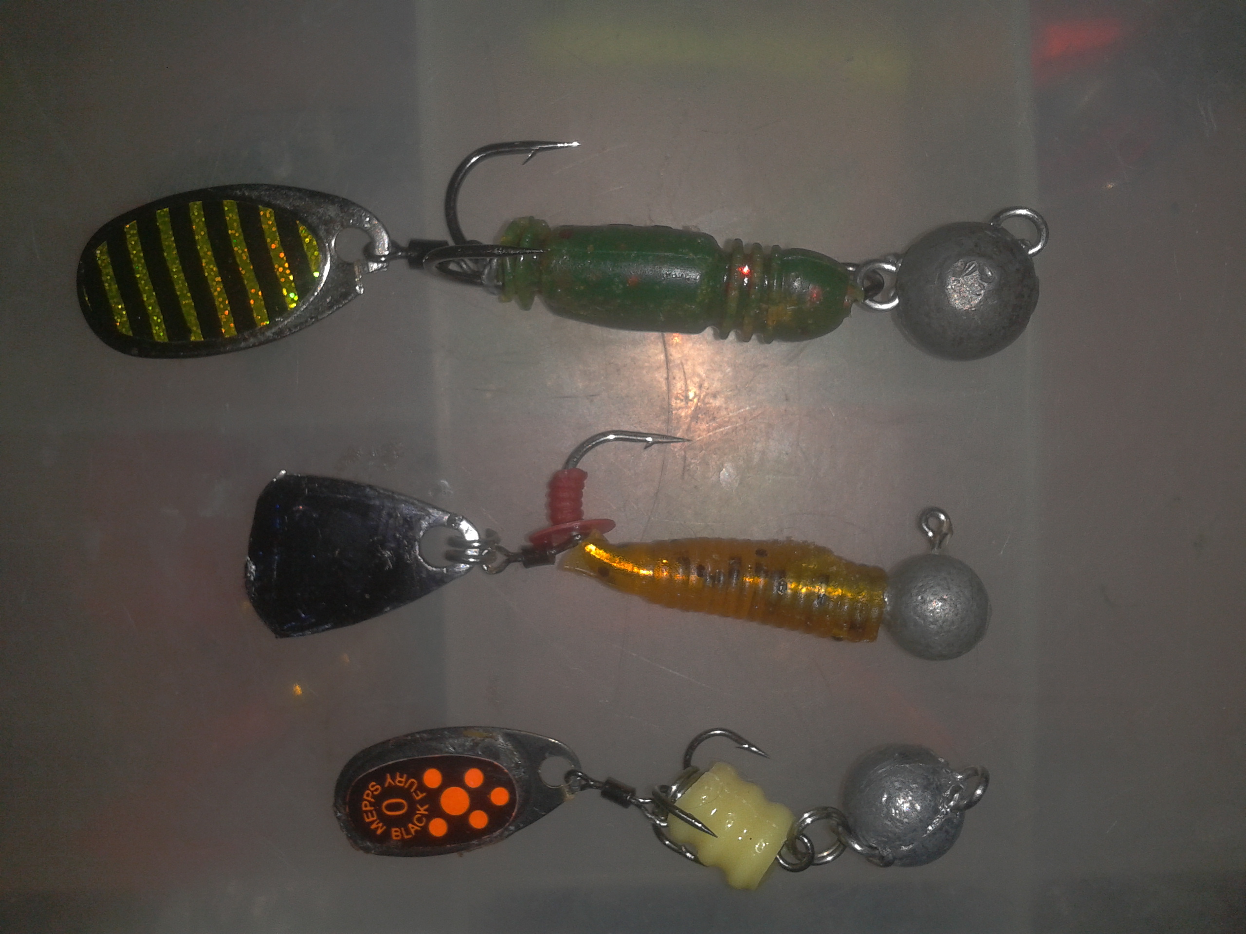 сделал из двойника на который одел тело тиоги 2" у которой хвост отгрызли, лепесток от вертухи единички на вертлюге без заводного кольца, все это на чебурахе 4гр.