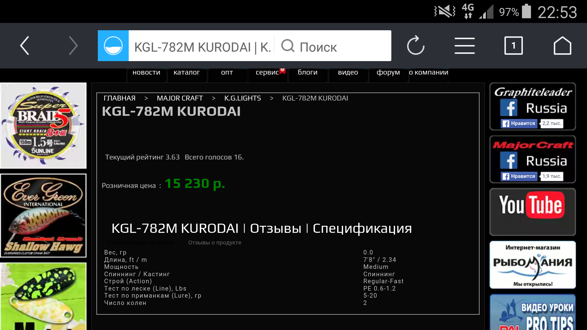 Эй, спинингисты, мне тут по случаю досталась палка Major Craft KJL-782m, процените ее. Сколько такая стоит и насколько она крутая? Купить шнур с катухой и вкатиться в спининг, или продать её и накупить фидерного барахлишка сам то я фидерист