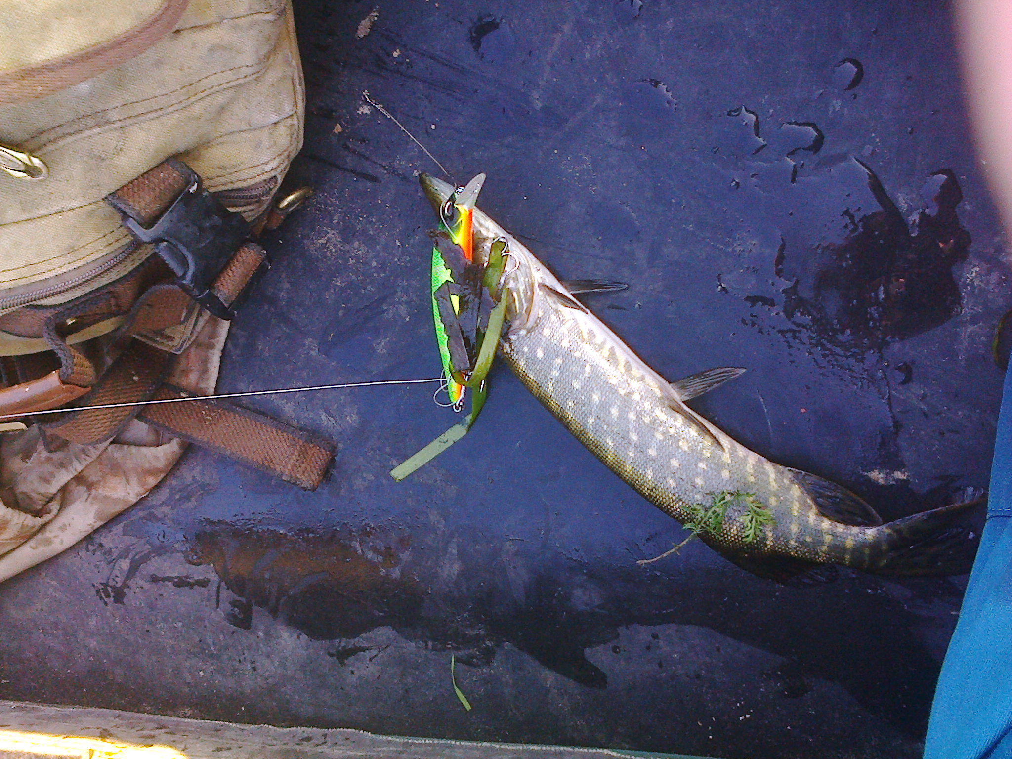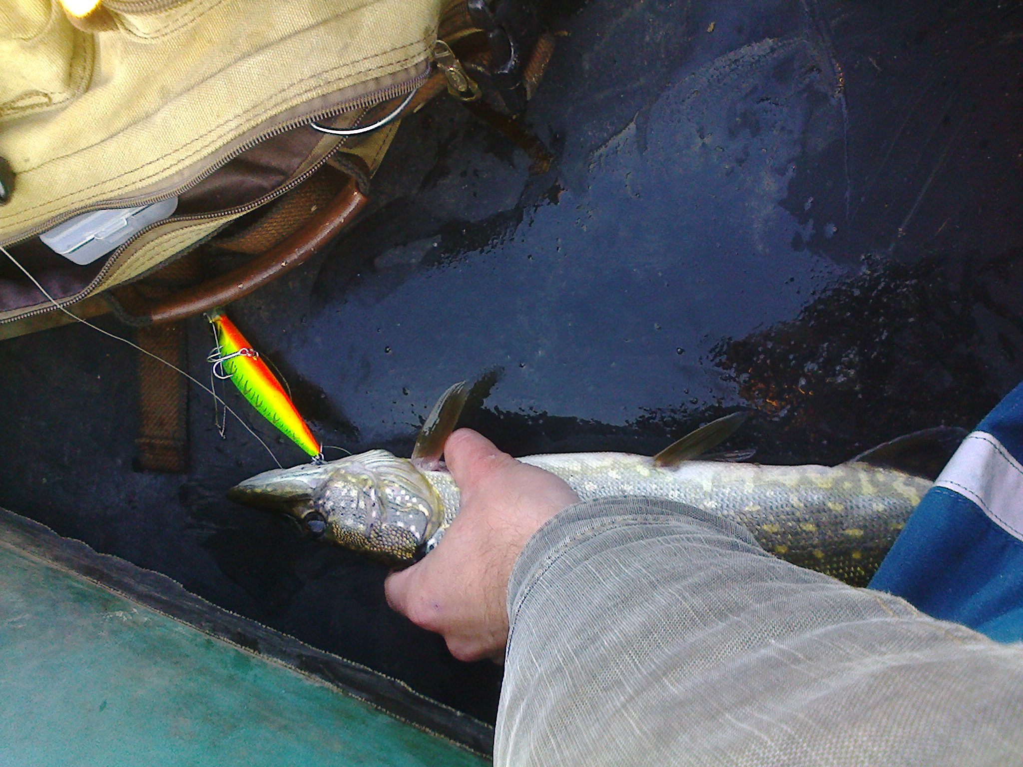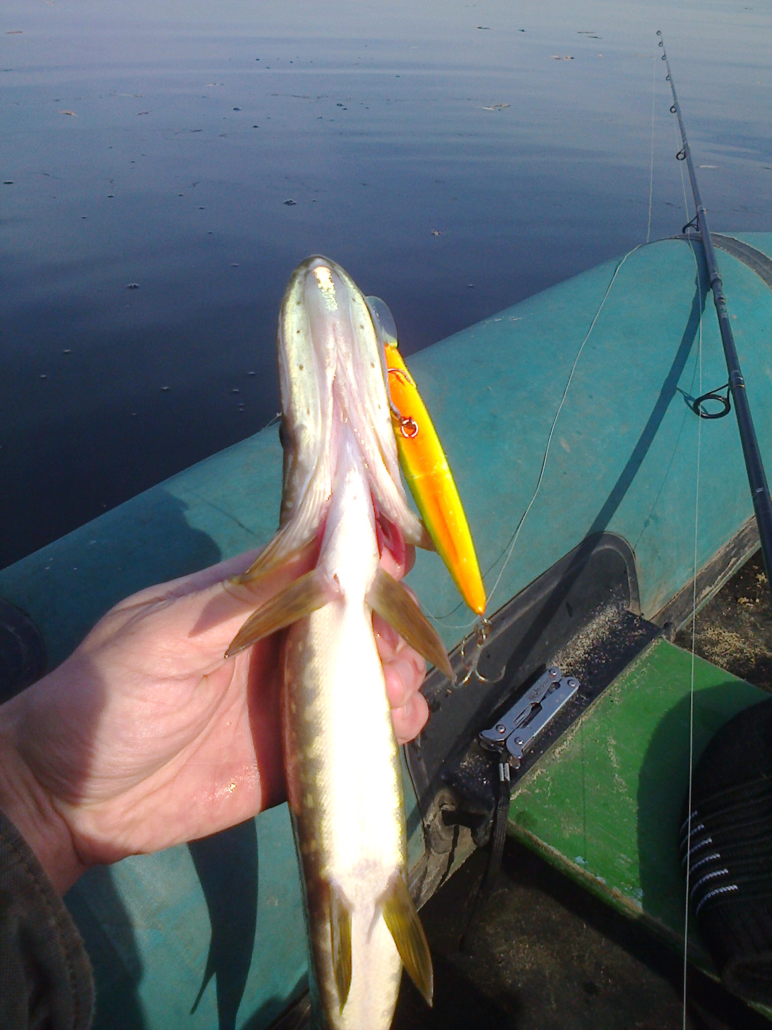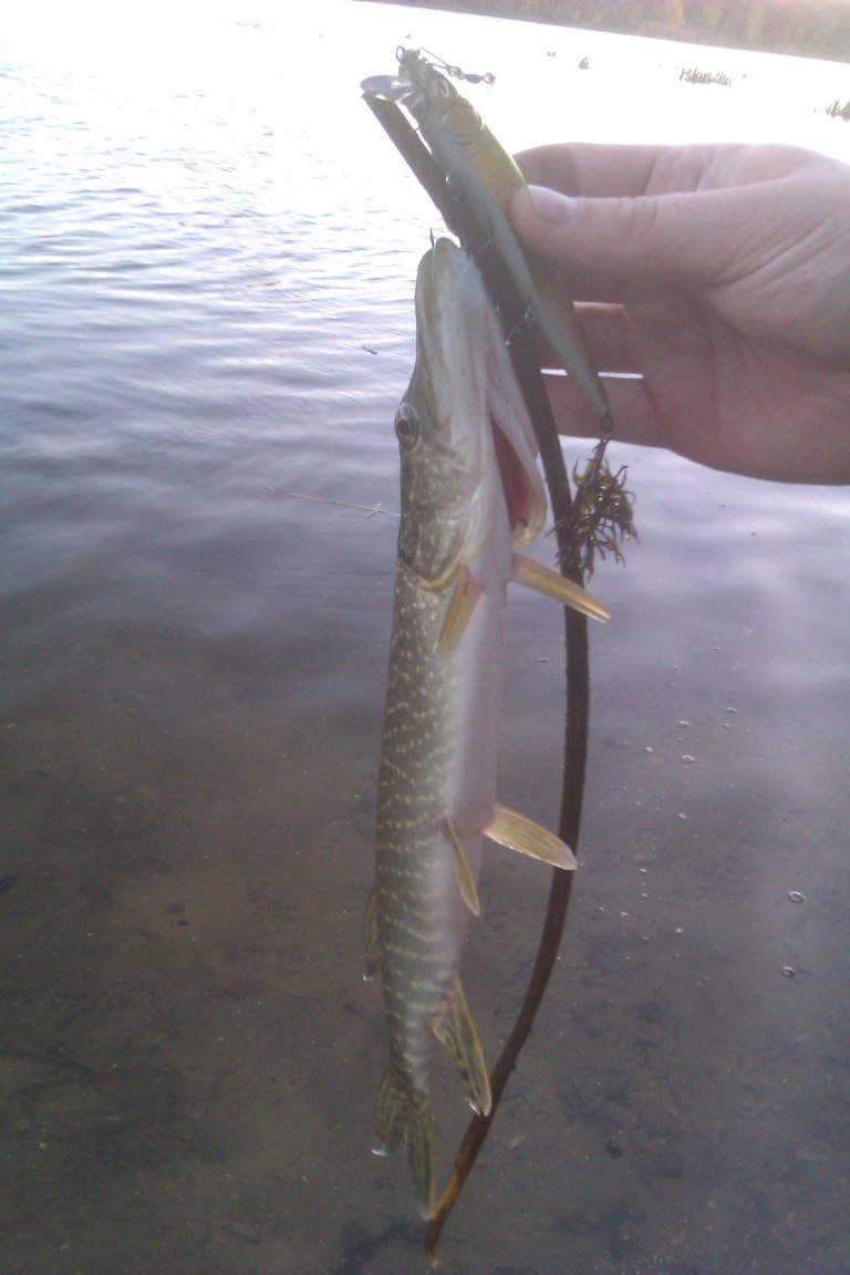 Сегодня ночью первые заморозки. Погулял 2,5 часа. Поймал 4 щучки. 1-ую грамм на 250-300 на little cleo первым же забросом. Вторым забросом я ее оставил, за что-то намертво зацепила. А дальше мегабасс отработал, в течении 10 минут зацепил шнурка грамм 100-200. И большую, дома взвесил - 1925 грамм спасибо, пацанам, которые недалеко были, помогли выволочь и отцепить И в конце грамм на 600. ньюфаг