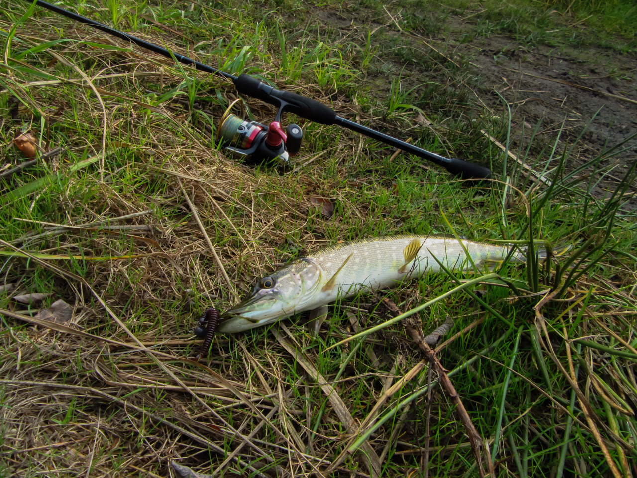 Кстати, вот вам сегодняшние щучки. Рассчитывали на большее, конечно, но рыба сегодня кушать не очень хотела. Ещё было несколько припиздженных окуней, кидающихся на резину 3+ дюйма.