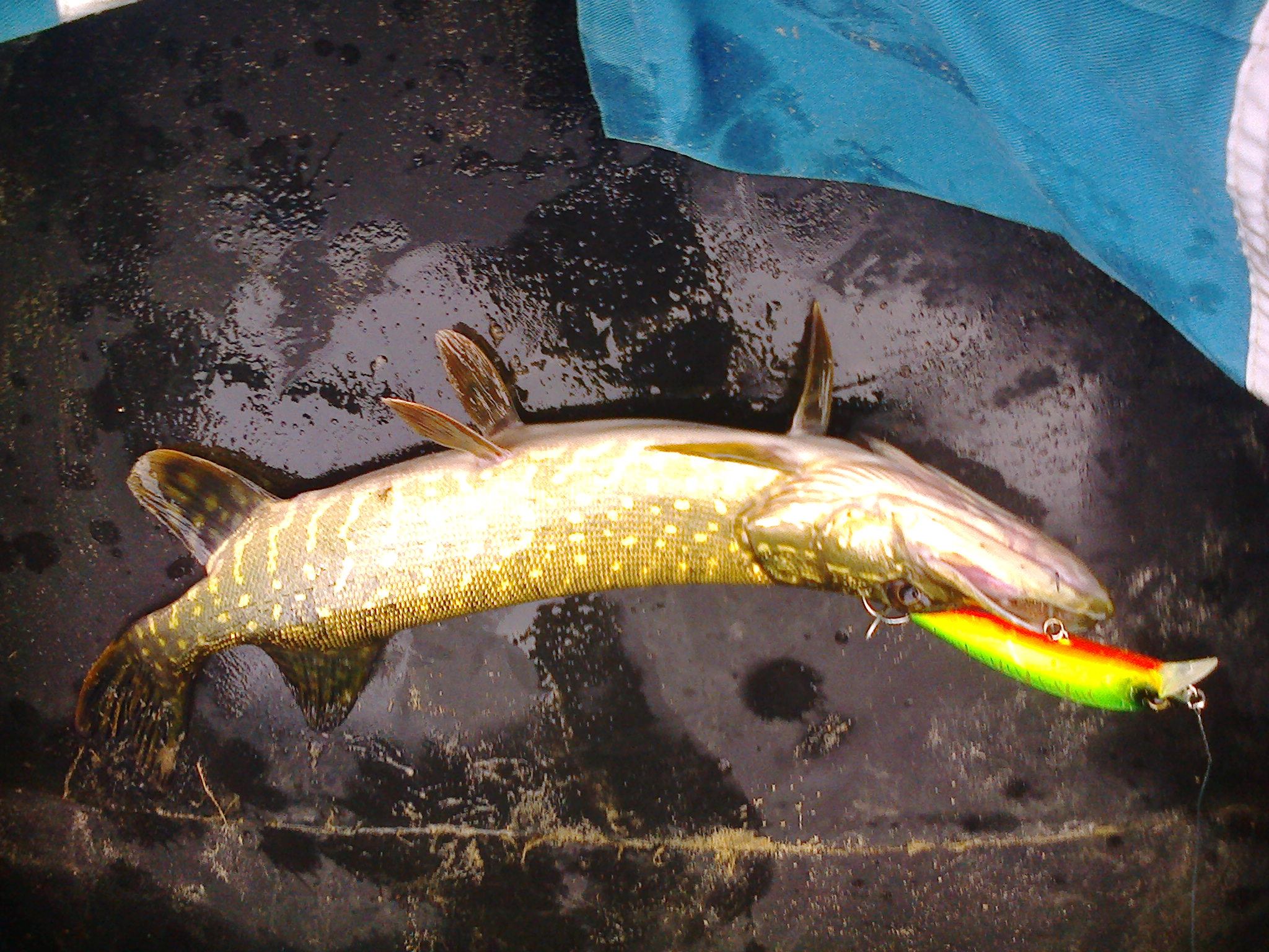 а вот и опять я с неудачами, щука взялась ну просто блять сказка, самая показательная поклевка за всю мою карьеру, на границе травы и чистой воды на свале, дал небольшую паузу и почти сразу удар и вот такая красавица была отпущена, а потом я стал ловить окуньков, которым сегодня очень понравился зелененький фанатик коптильни опять задымились, воблер от очень известной фирмы трулинойя, заглубление до трех метров, копия эвергрина помоему, какойто там кренк, все тот же неудачник-кун разбавлю ваще говно рыбой, а то совсем забудете как она выглядит