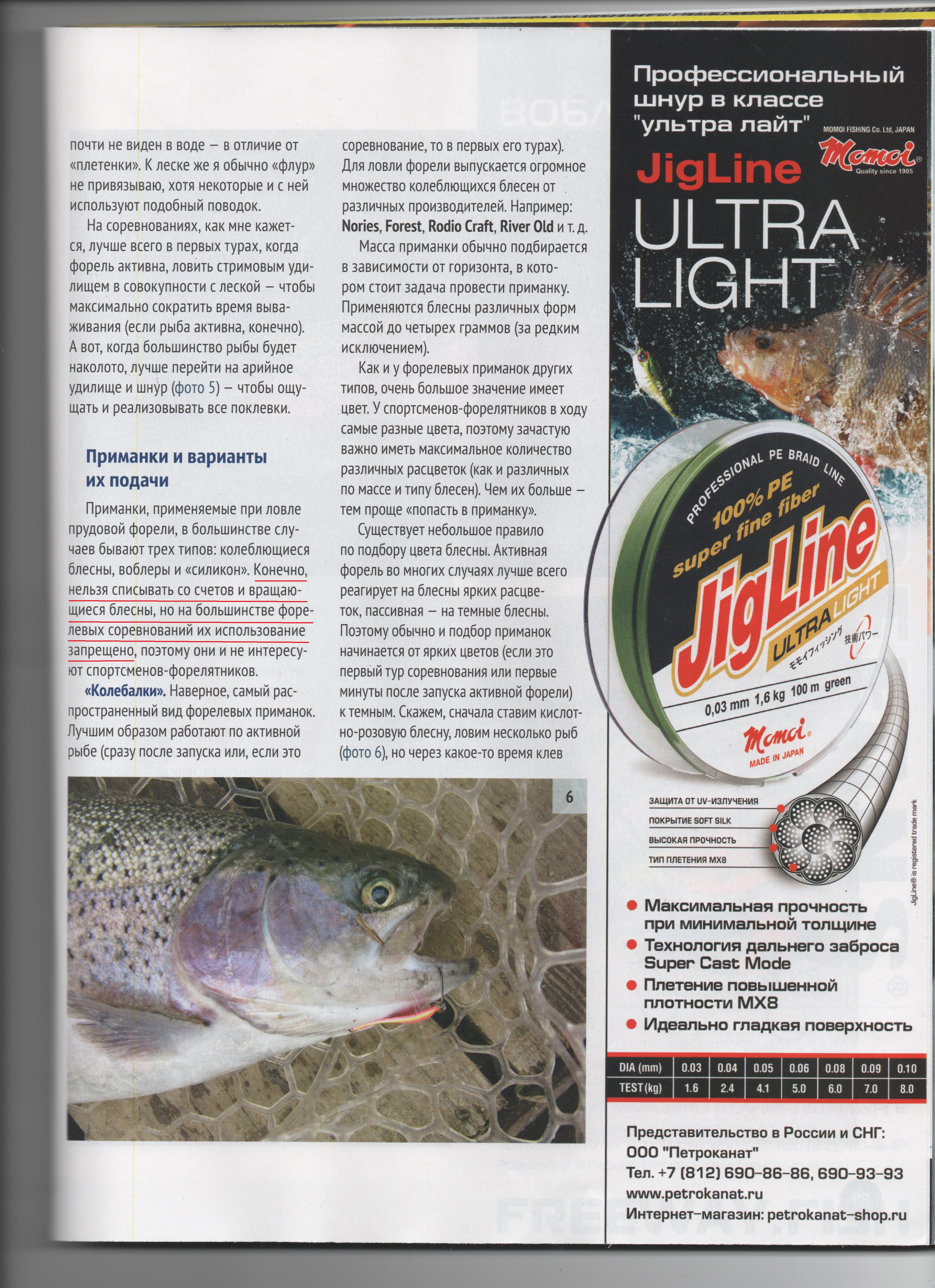 >>13898 > Успешный рыбак на платнике уверял меня, что форель боится именно шнура, то есть флюр необходим для конспирации. У него действительно на тонкий шнур #004 вроде или как там по этой японской классификации был привязан довольно толстый флюр 0,2. Вполне нормальный флюр, можно и тоньше.