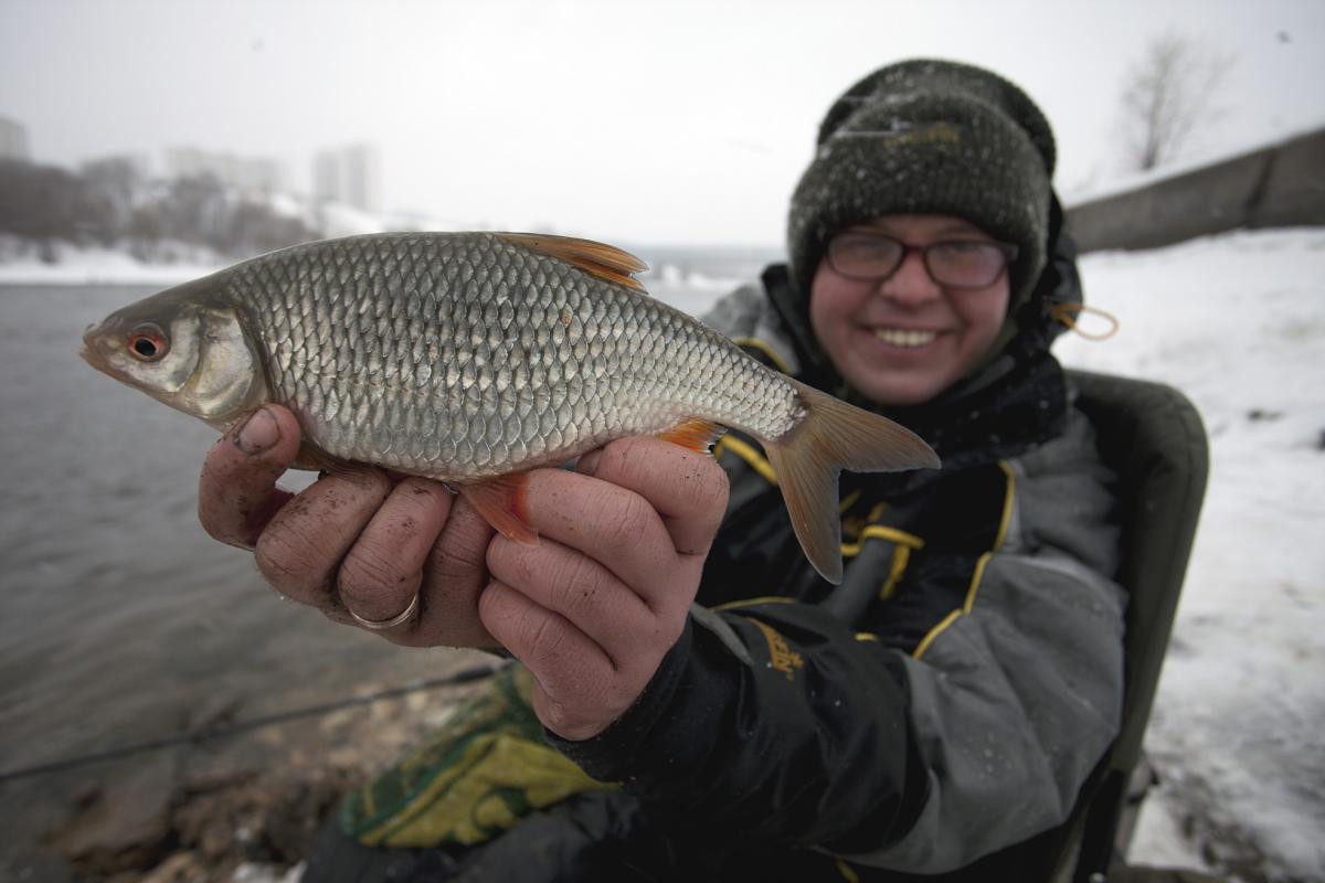 Ну чего вы там, спите? Пикер на Яузе в Москве продолжается. Все диды-рыбаки разбежались, им холодно, у них не клюёт. А мы продолжаем. Клёв реально включает прикормка с кормовым мотылём, насадка тоже мотыль, но крупный. нужно покупать нормальный зимний костюм