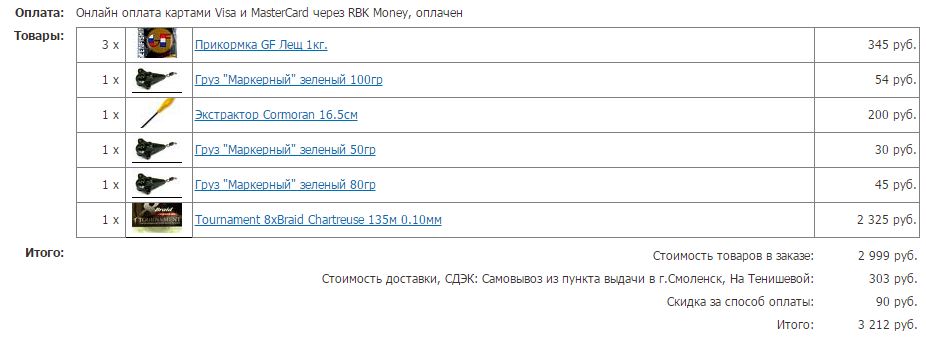 Всем привет, небольшой отчет о покупке в интернет-магазине fishpoint.ru. Заказ сделал 21 го февраля, несколько раз писал с просьбой сообщить номер отслеживания почтового отправления, звонил с той же просьбой, говорили завтра вышлем, ну я ждал ждал и в итоге сегодня уже посылка пришла в мой город, мне позвонили с почтамта и сказали приходить забирать, забрал, все в наличии, все хорошо. Насколько мне известно это один из самых первых интернет-магазинов, специализирующихся на фидерных снастях, у ребят большая клиентская аудитория, поэтому и небольшие заминки происходят.